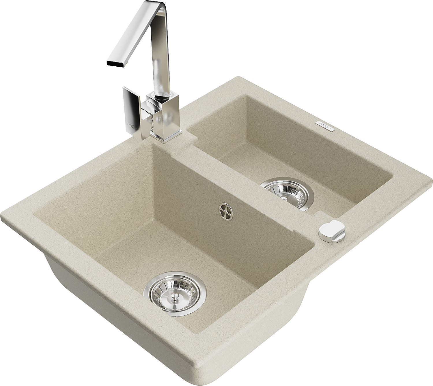 Mexen Carlos granitový dřez 1,5-komorový s kuchyňskou baterií Rita, béžový - 6518-69-670300-00
