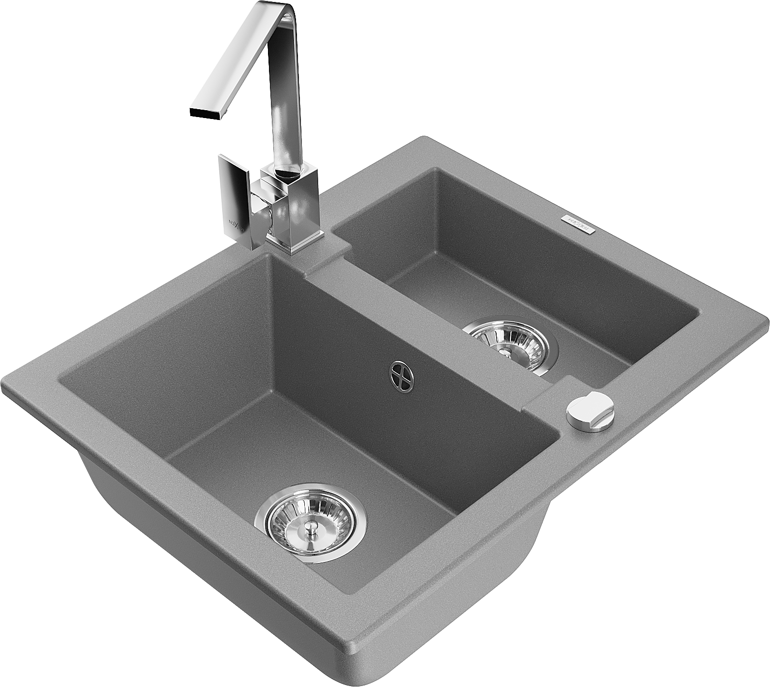 Mexen Carlos granitový dřez 1,5-komorový s kuchyňskou baterií Rita, šedý - 6518-71-670300-00