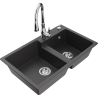 Mexen Tomas granitový dřez 2-komorový s kuchyňskou baterií Savita, černý - 6516-77-672601-00