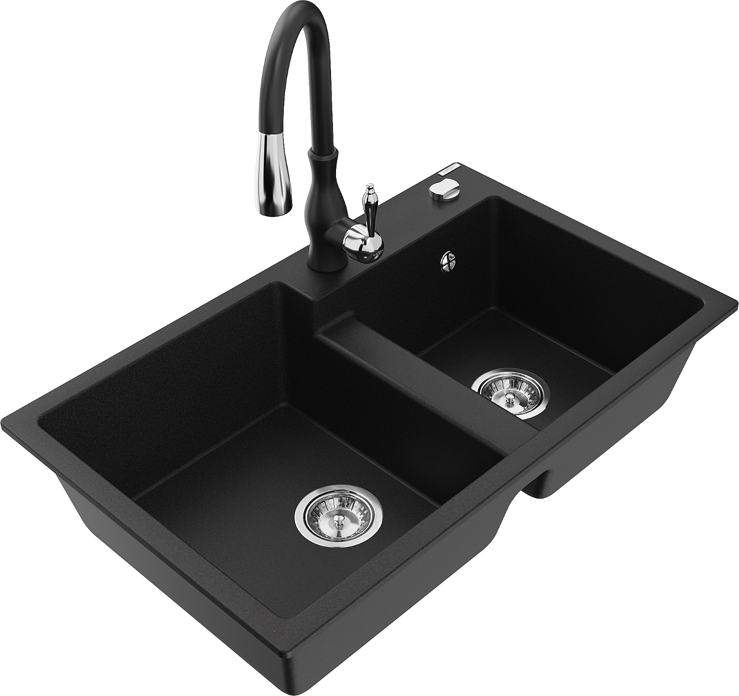 Mexen Tomas granitový dřez 2-komorový s kuchyňskou baterií Savita, černý - 6516-77-672601-70