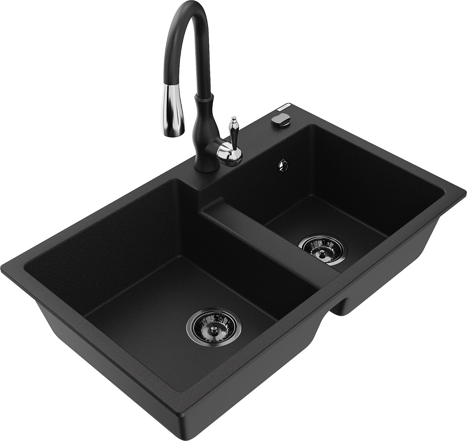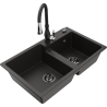 Mexen Tomas žulový dřez dvoukomorový s kuchyňskou baterií Savita, černý - 6516-77-672601-70-B