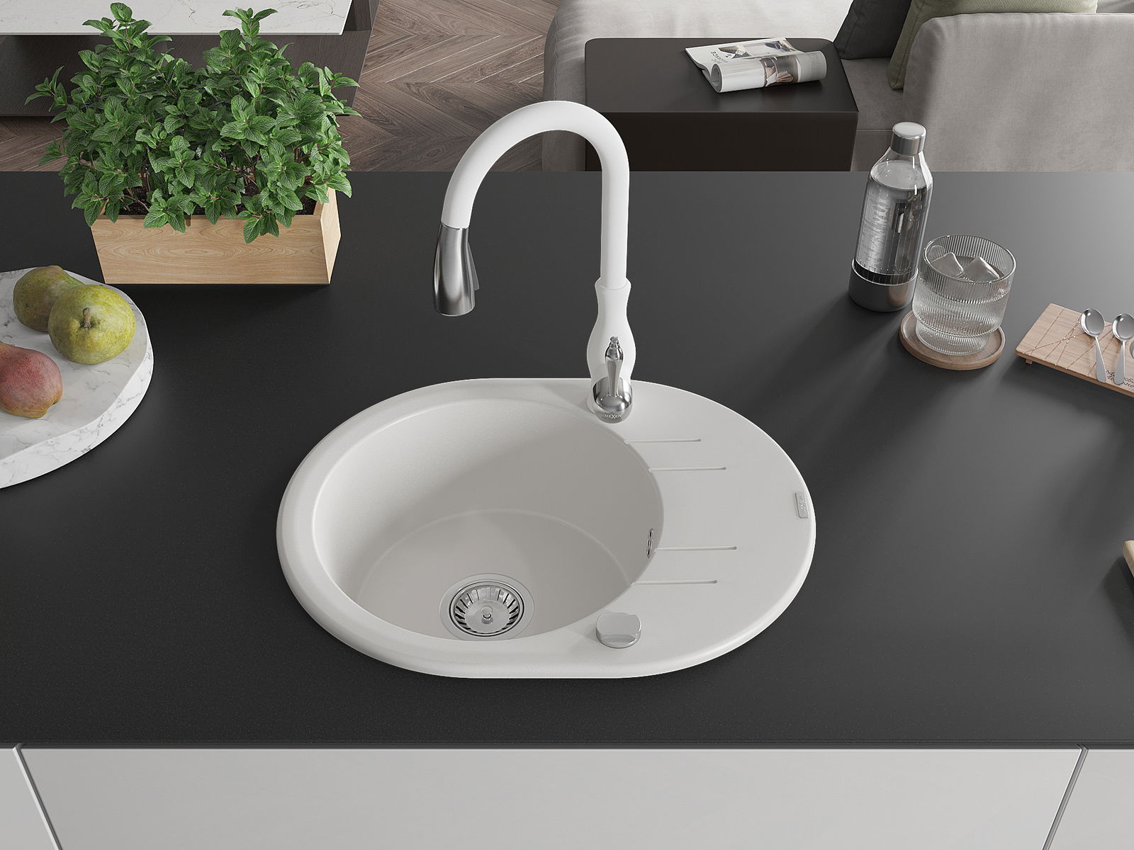 Dřez byl vyroben z vysoce kvalitního granitu. Představuje elegantní a především praktický doplněk každé kuchyně, bez ohledu na její styl. Vysoká kvalita a trvanlivost granitu zajišťují dlouholeté používání.