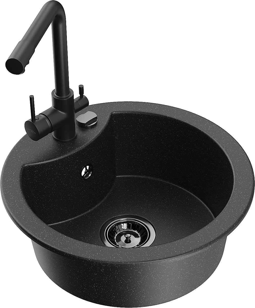 Mexen Diego granitový dřez 1-komorový s kuchyňskou baterií Duero, černý/stříbrný metalik - 6512-73-671600-70-B