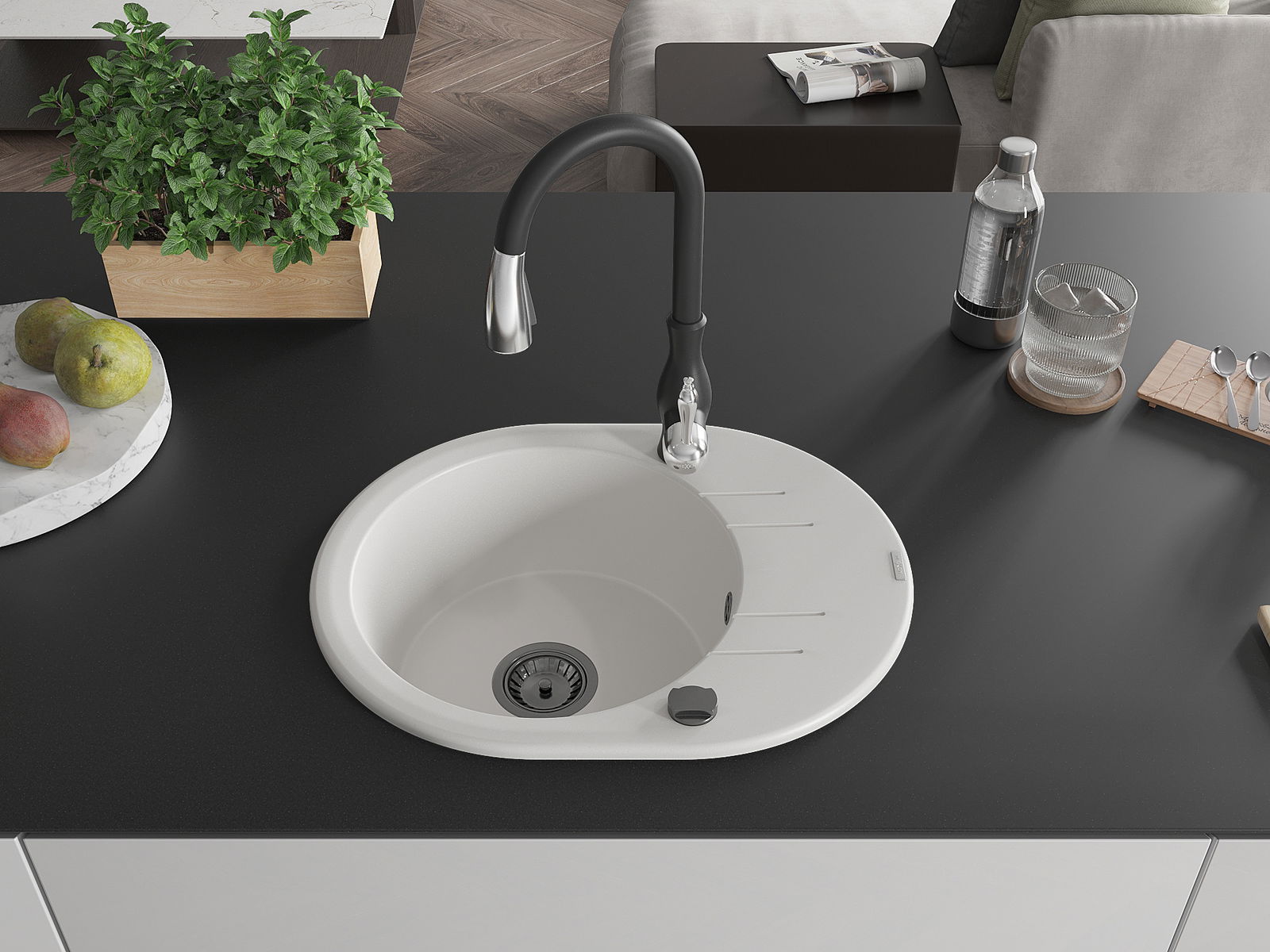 Dřez byl vyroben z vysoce kvalitního granitu. Představuje elegantní a především praktický doplněk každé kuchyně, bez ohledu na její styl. Vysoká kvalita a trvanlivost granitu zajišťují dlouholeté používání.