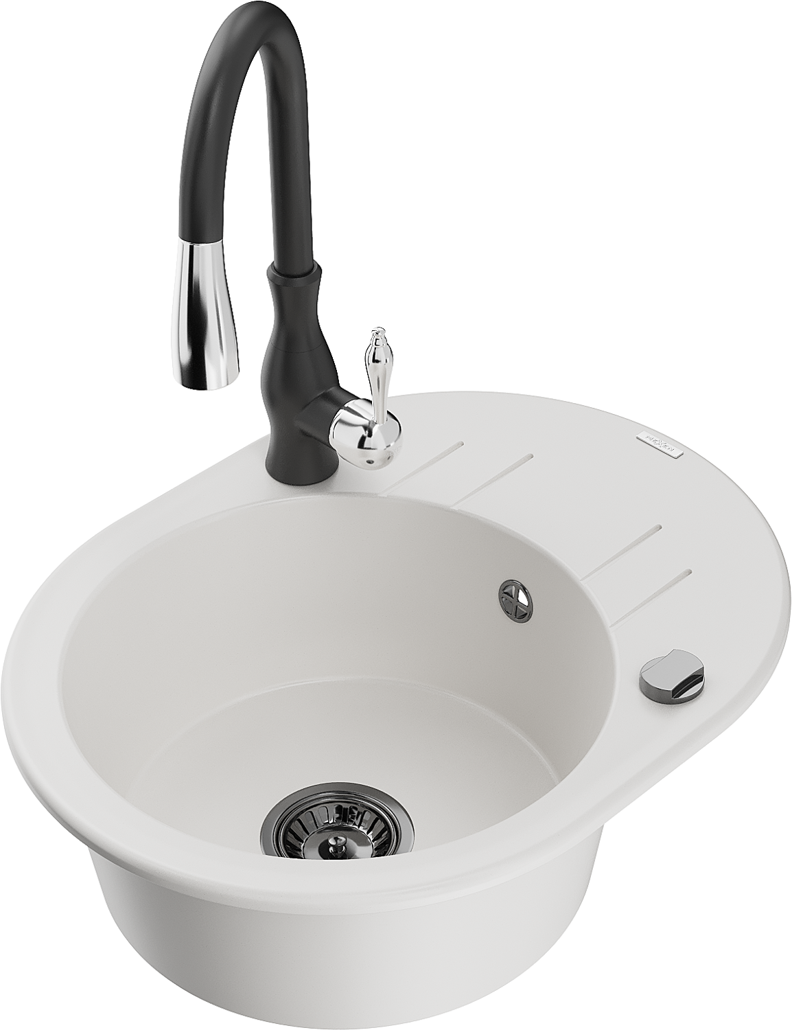 Mexen Kevin granitový dřez 1-komorový s odkapávačem a kuchyňskou baterií Savita, bílý - 6517-20-672601-70