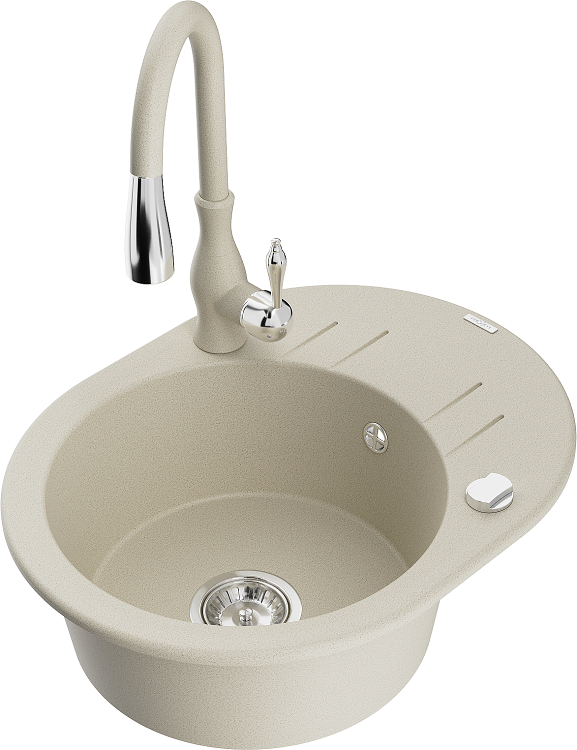 Mexen Kevin granitový dřez 1-komorový s odkapávačem a kuchyňskou baterií Savita, béžový - 6517-69-672601-69