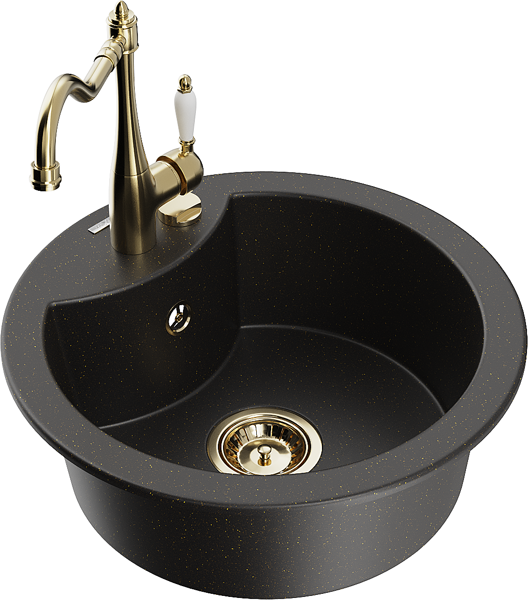 Mexen Diego granitový jednodřez s kuchyňskou baterií Carla, černá/zlatý metalík - 6512-75-670700-50