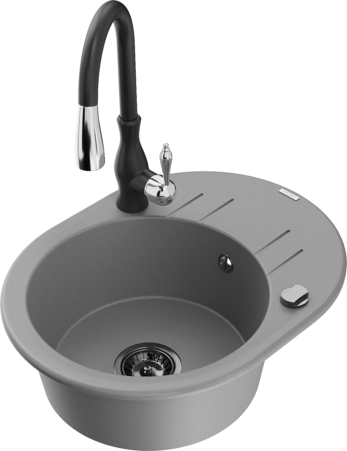 Mexen Kevin granitový dřez 1-komorový s odkapávačem a kuchyňskou baterií Savita, šedý - 6517-71-672601-70-B