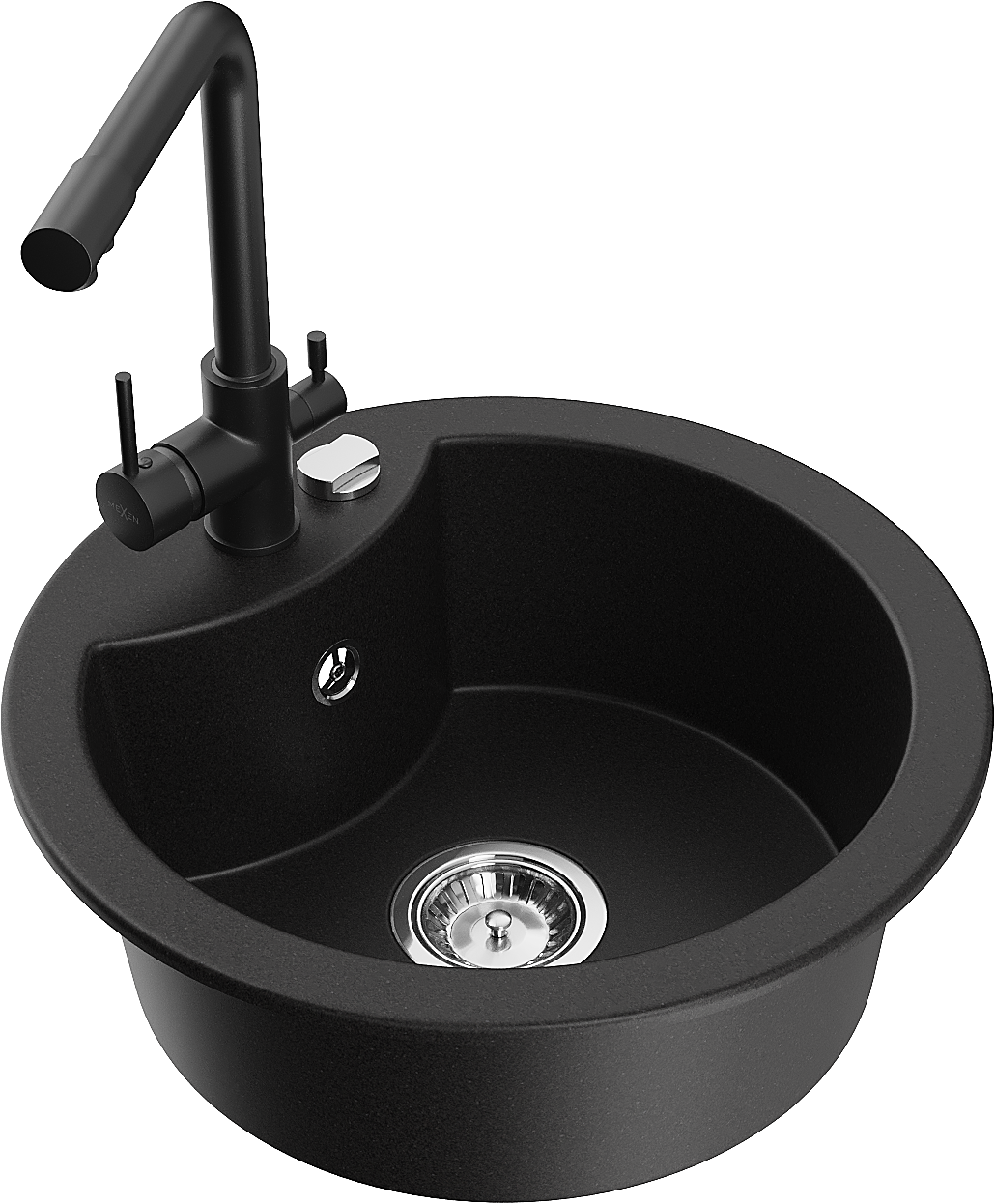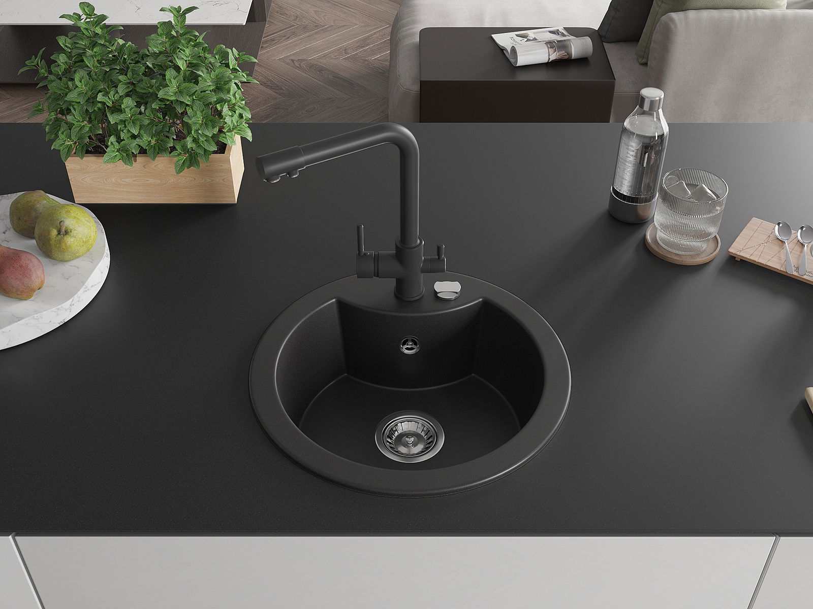 Mexen Diego granitový dřez 1-komorový s kuchyňskou baterií Duero, černý - 6512-77-671600-70