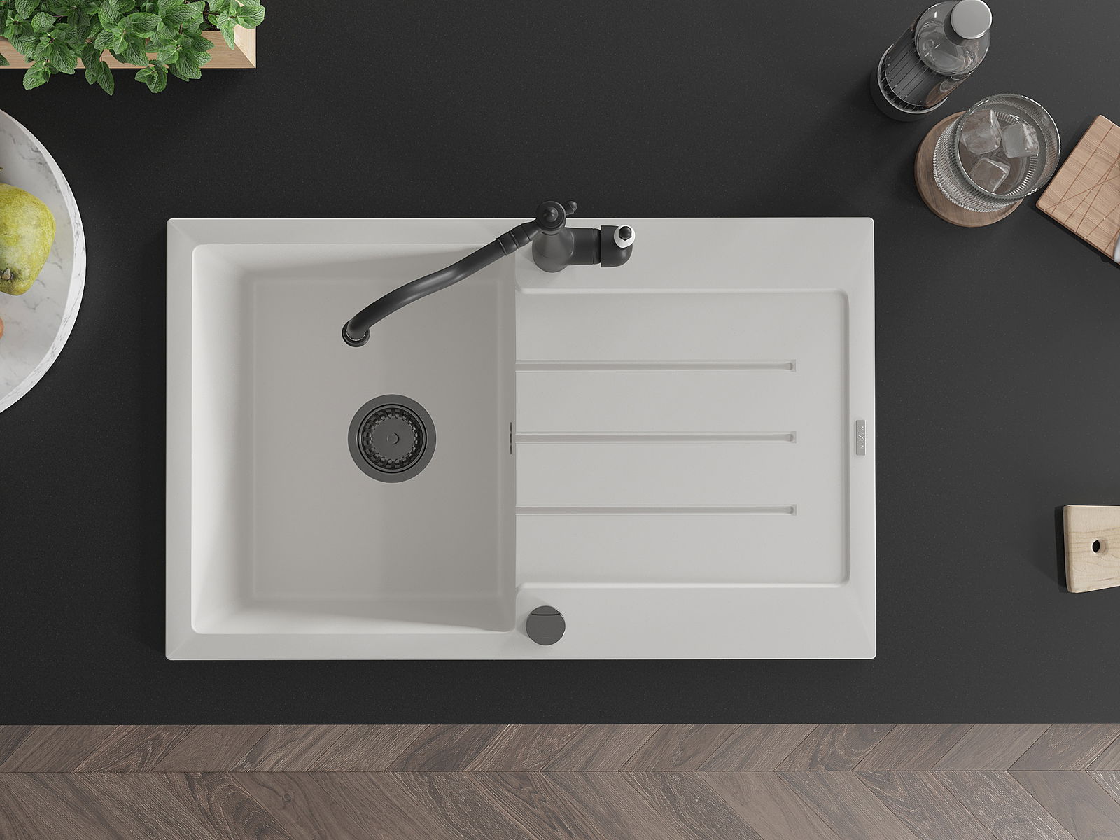 Povrch dřezu je velmi dobře vytvrzený, vyznačuje se výjimečnou odolností proti mechanickému poškození a poškrábání. Trvanlivý materiál umožňuje užívat si dobrý vzhled dřezu po mnoho let používání.