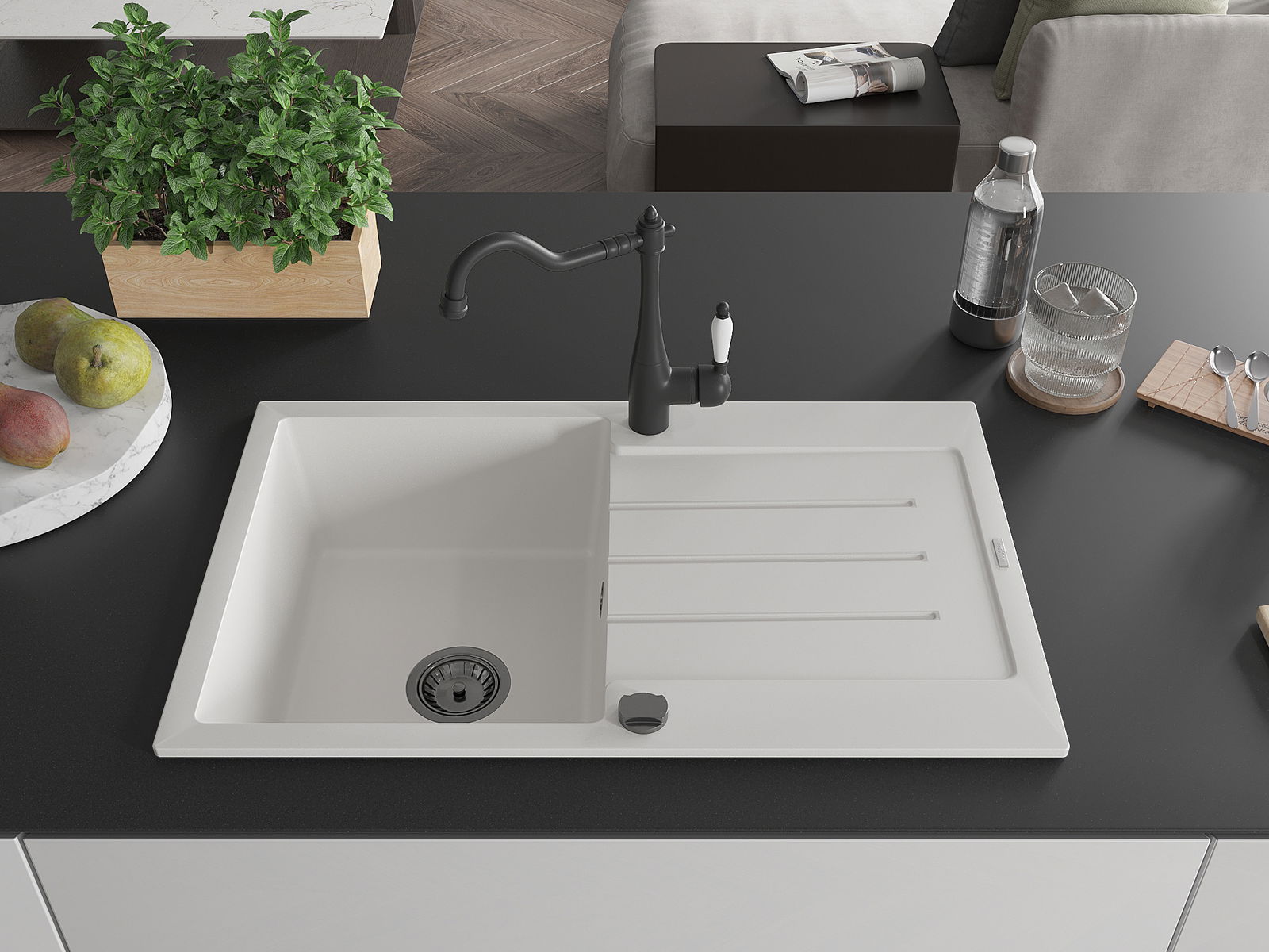 Dřez byl vyroben z vysoce kvalitního granitu. Představuje elegantní a především praktický doplněk každé kuchyně, bez ohledu na její styl. Vysoká kvalita a trvanlivost granitu zajišťují dlouholeté používání.