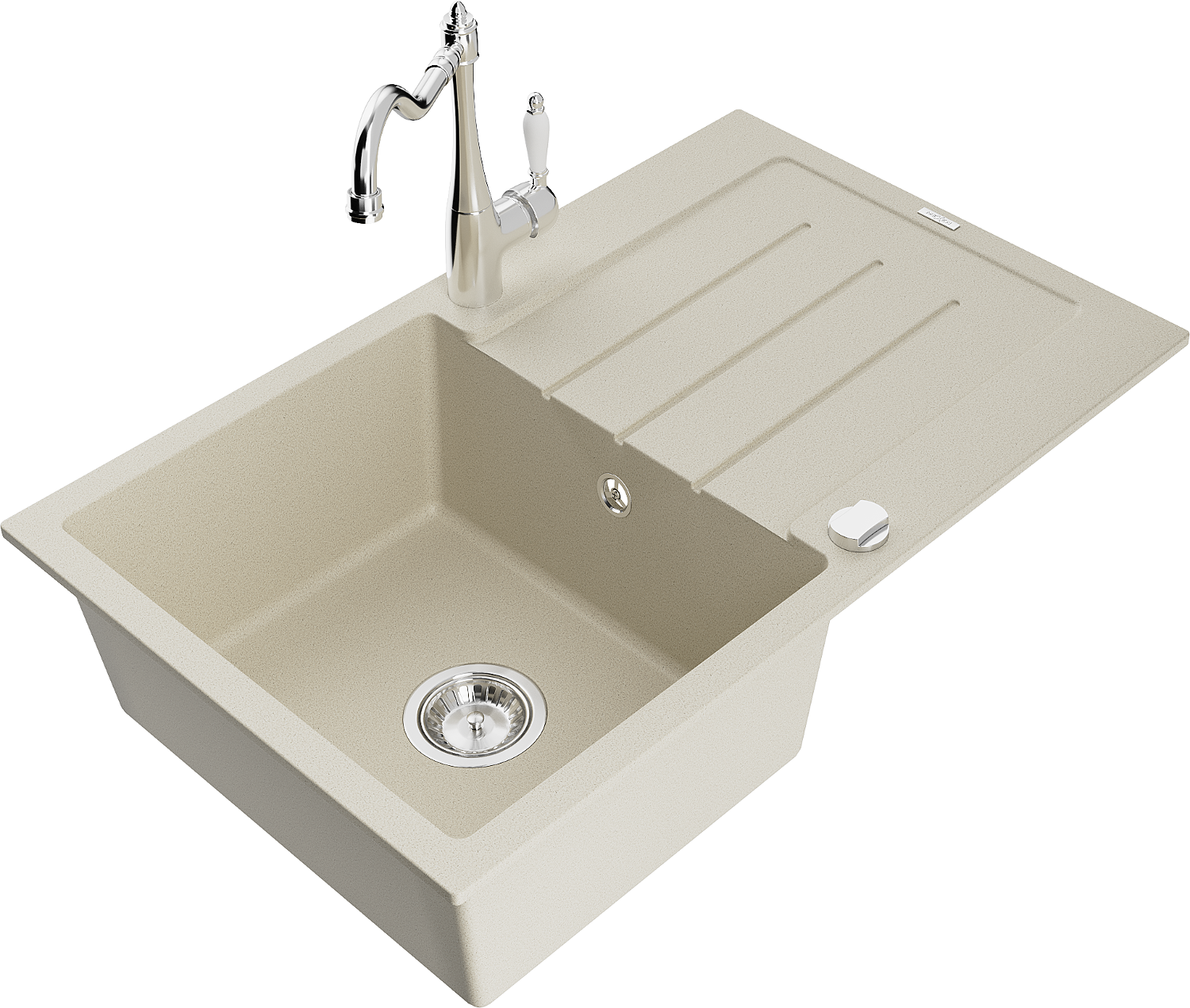 Mexen Bruno granitový dřez s 1 komorou a odkapávačem a kuchyňskou baterií Carla, béžový - 6513-69-670700-00