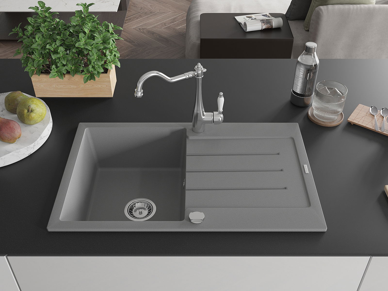 Dřez byl vyroben z vysoce kvalitního granitu. Představuje elegantní a především praktický doplněk každé kuchyně, bez ohledu na její styl. Vysoká kvalita a trvanlivost granitu zajišťují dlouholeté používání.