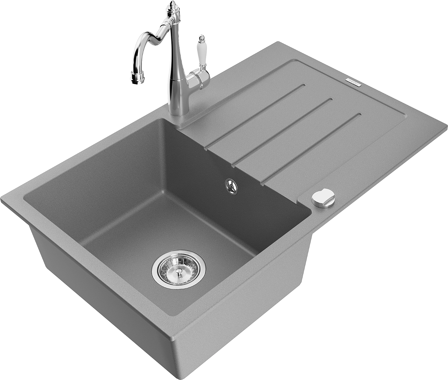 Mexen Bruno kuchyňský dřez granitový 1-komorový s odkapávačem a kuchyňskou baterií Carla, šedý - 6513-71-670700-00