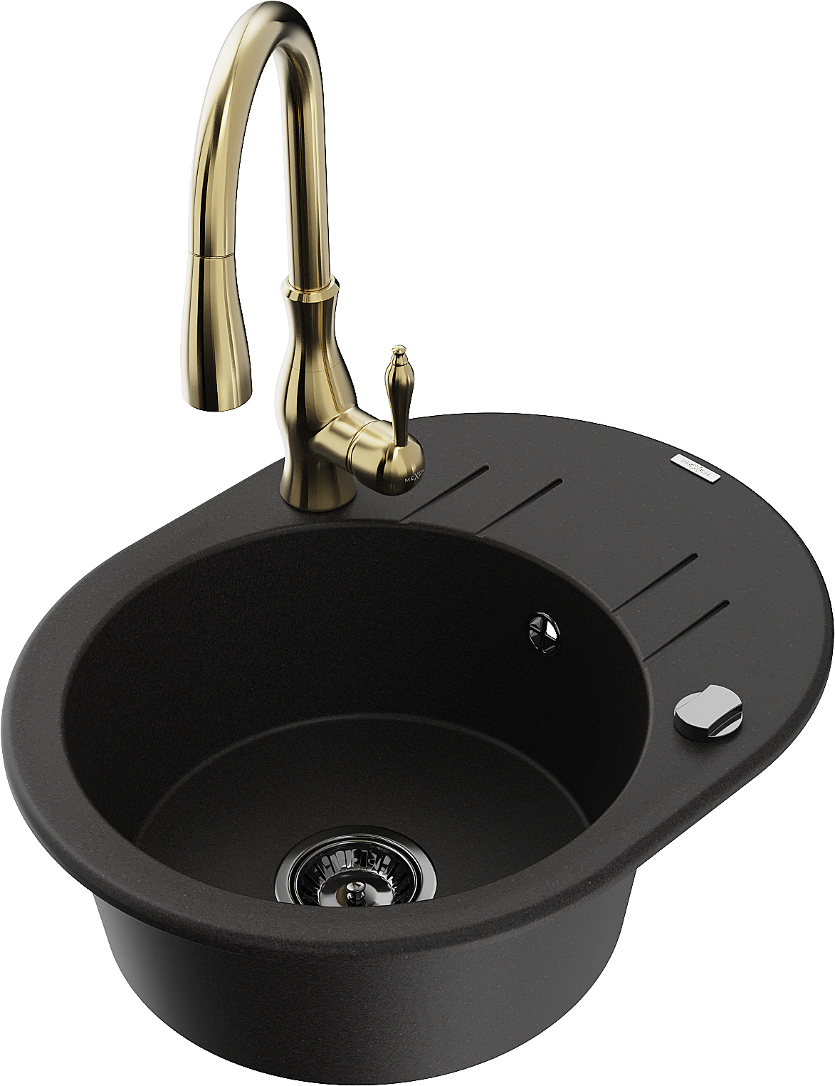 Mexen Kevin granitový dřez 1-komorový s odkapávačem a kuchyňskou baterií Savita, černý - 6517-77-672601-50-B