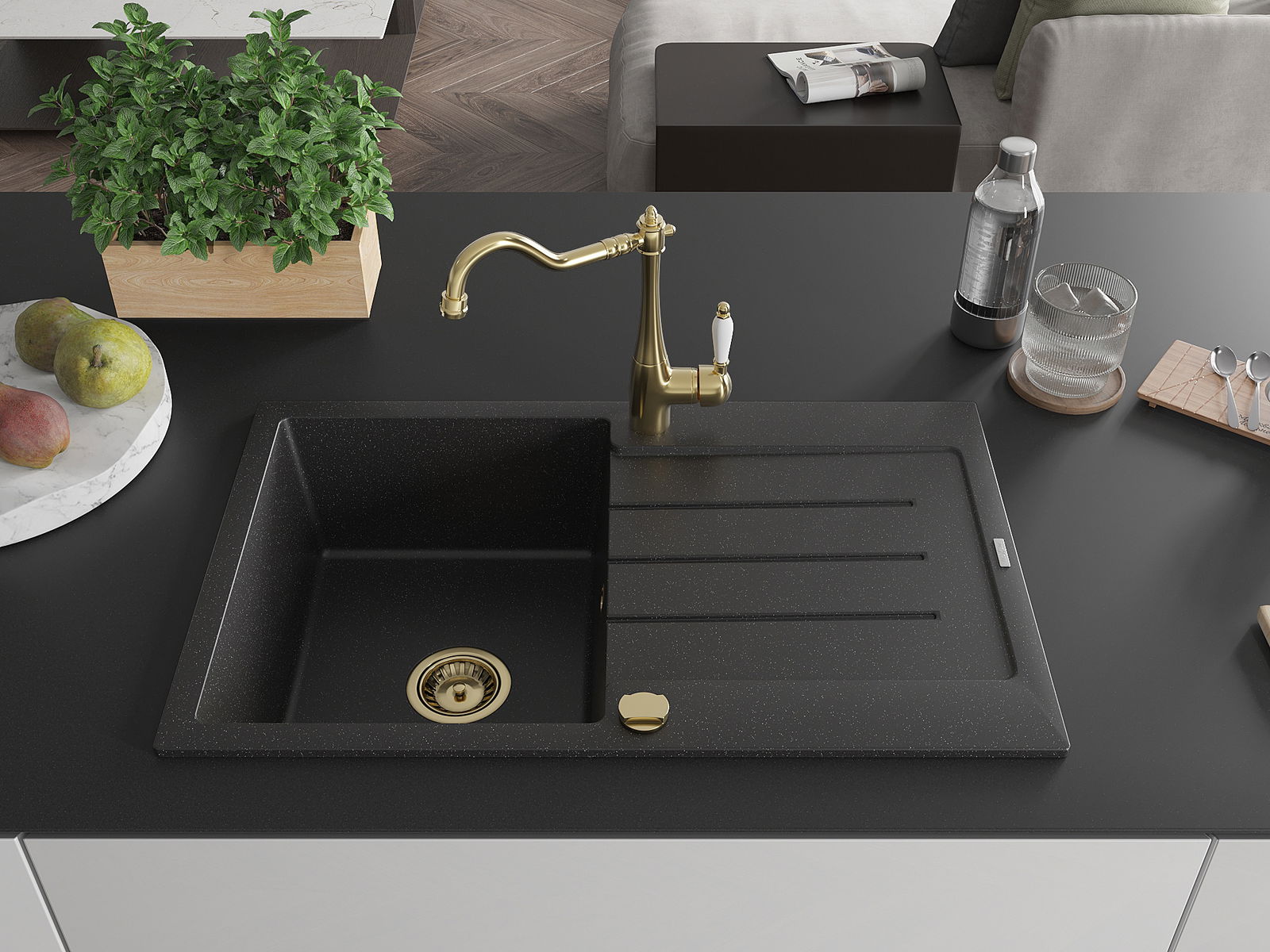 Dřez byl vyroben z vysoce kvalitního granitu. Představuje elegantní a především praktický doplněk každé kuchyně, bez ohledu na její styl. Vysoká kvalita a trvanlivost granitu zajišťují dlouholeté používání.
