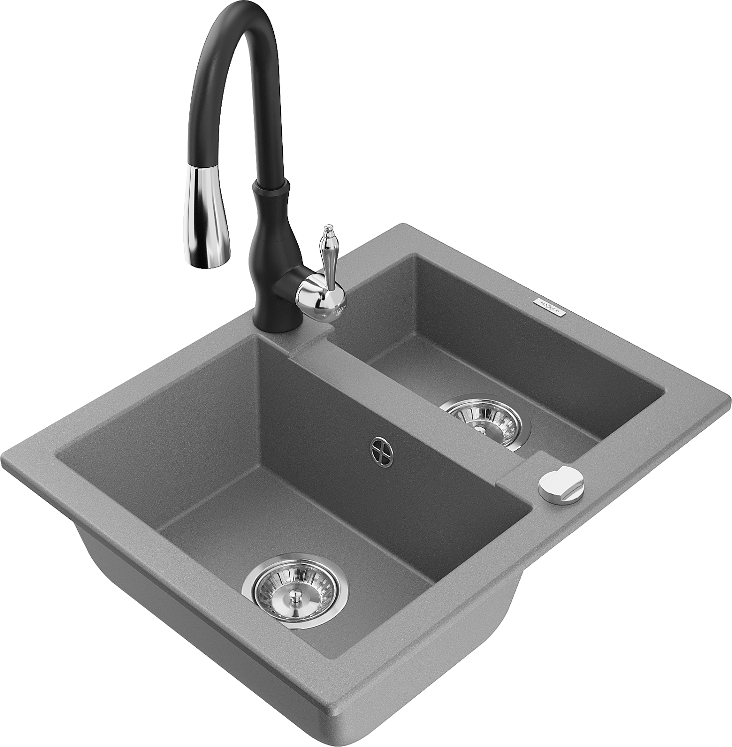 Mexen Carlos dřez granitový 1,5-komorový s kuchyňskou baterií Savita, šedý - 6518-71-672601-70