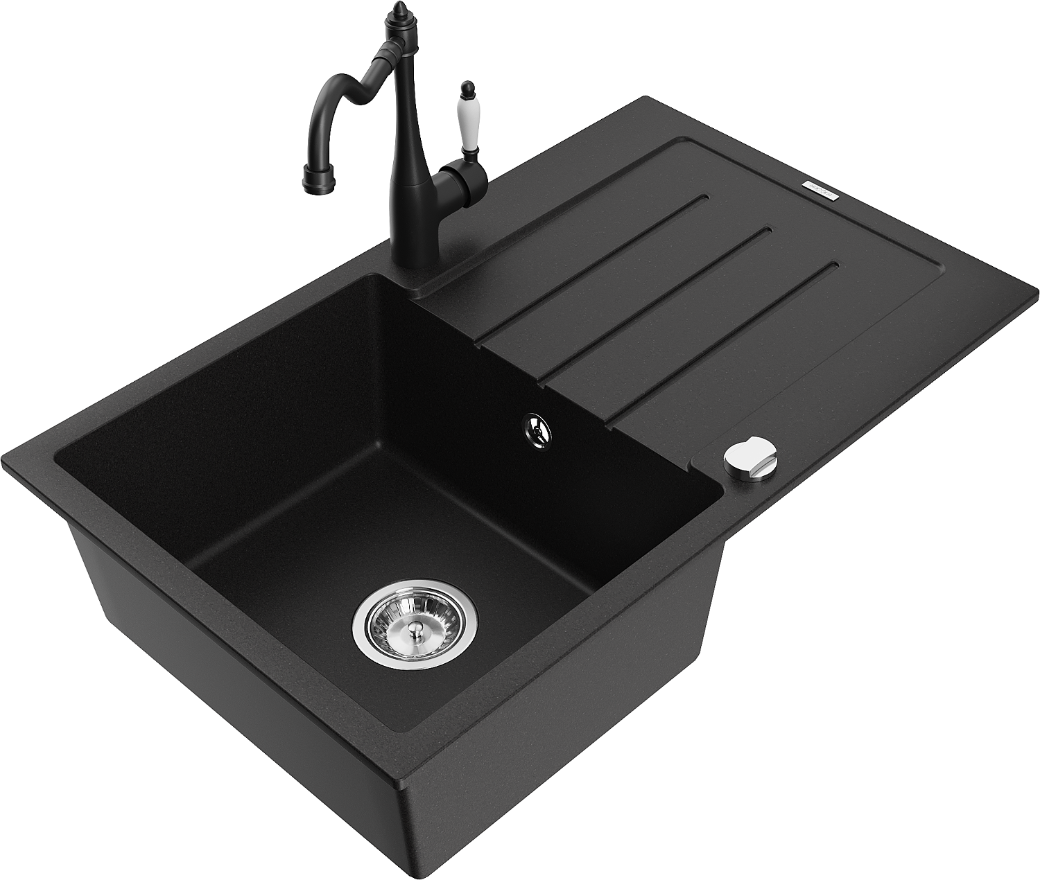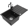 Mexen Bruno jednodřezový žulový dřez s odkapávačem a kuchyňskou baterií Carla, černý - 6513-77-670700-70