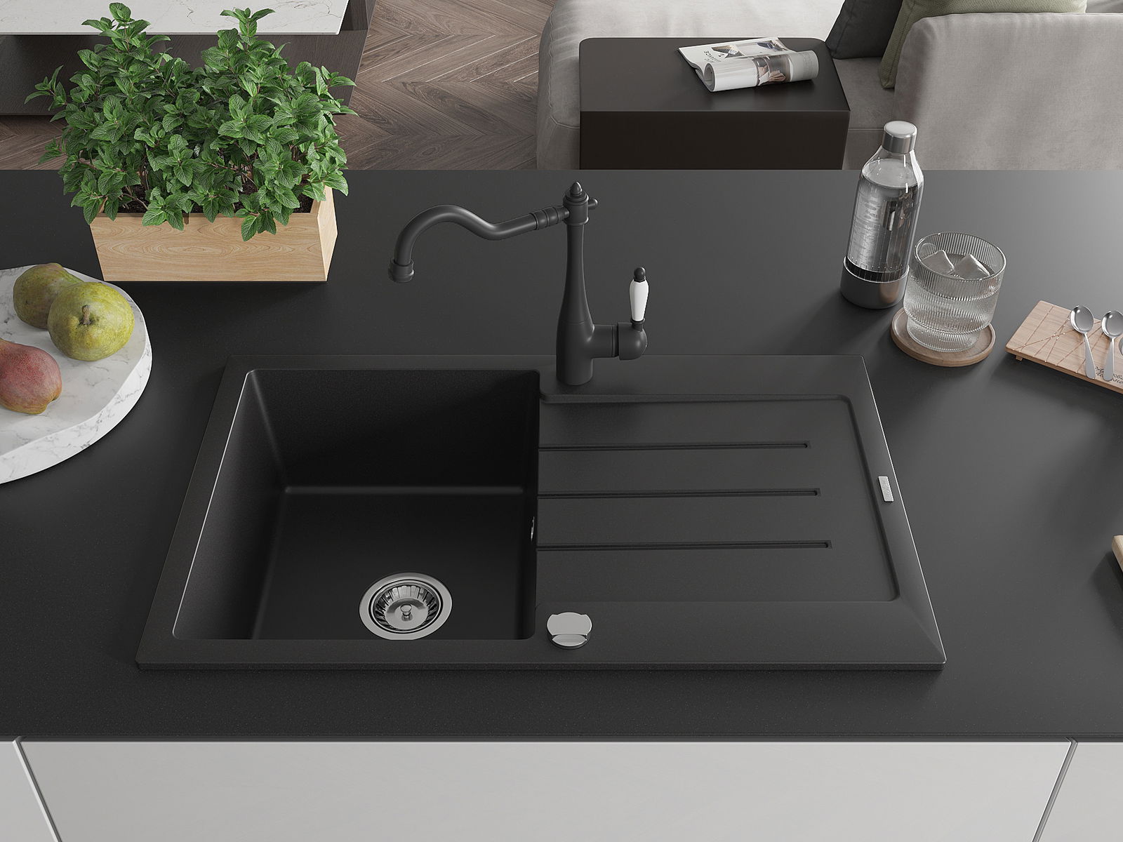 Dřez byl vyroben z vysoce kvalitního granitu. Představuje elegantní a především praktický doplněk každé kuchyně, bez ohledu na její styl. Vysoká kvalita a trvanlivost granitu zajišťují dlouholeté používání.