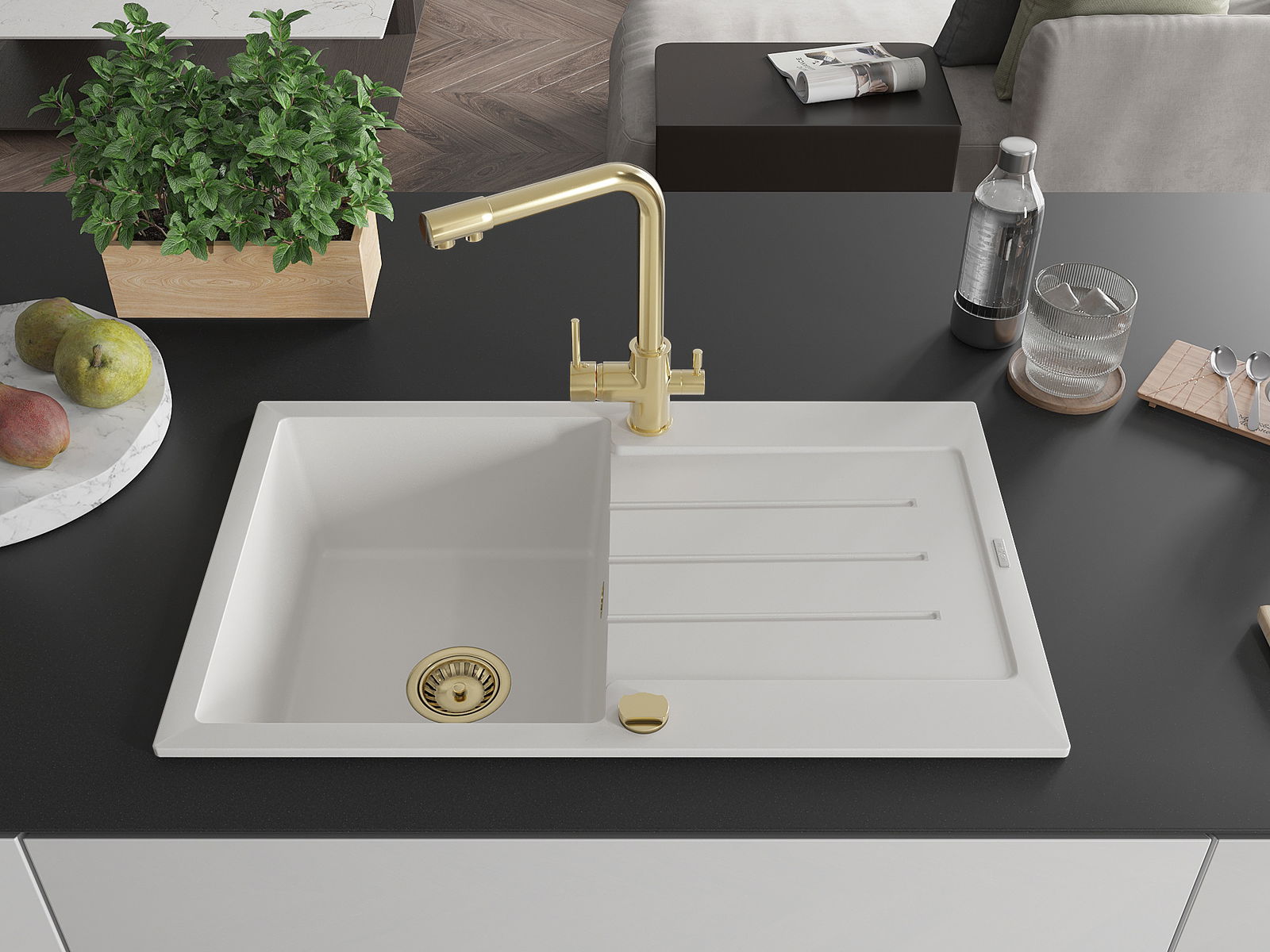 Dřez byl vyroben z vysoce kvalitního granitu. Představuje elegantní a především praktický doplněk každé kuchyně, bez ohledu na její styl. Vysoká kvalita a trvanlivost granitu zajišťují dlouholeté používání.
