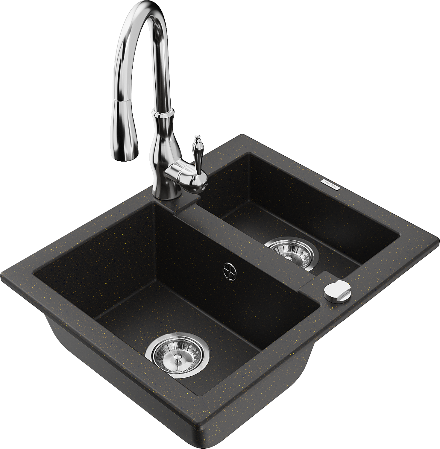Mexen Carlos granitový dřez 1,5-komorový s kuchyňskou baterií Savita, černý/zlatý metalický - 6518-75-672601-00