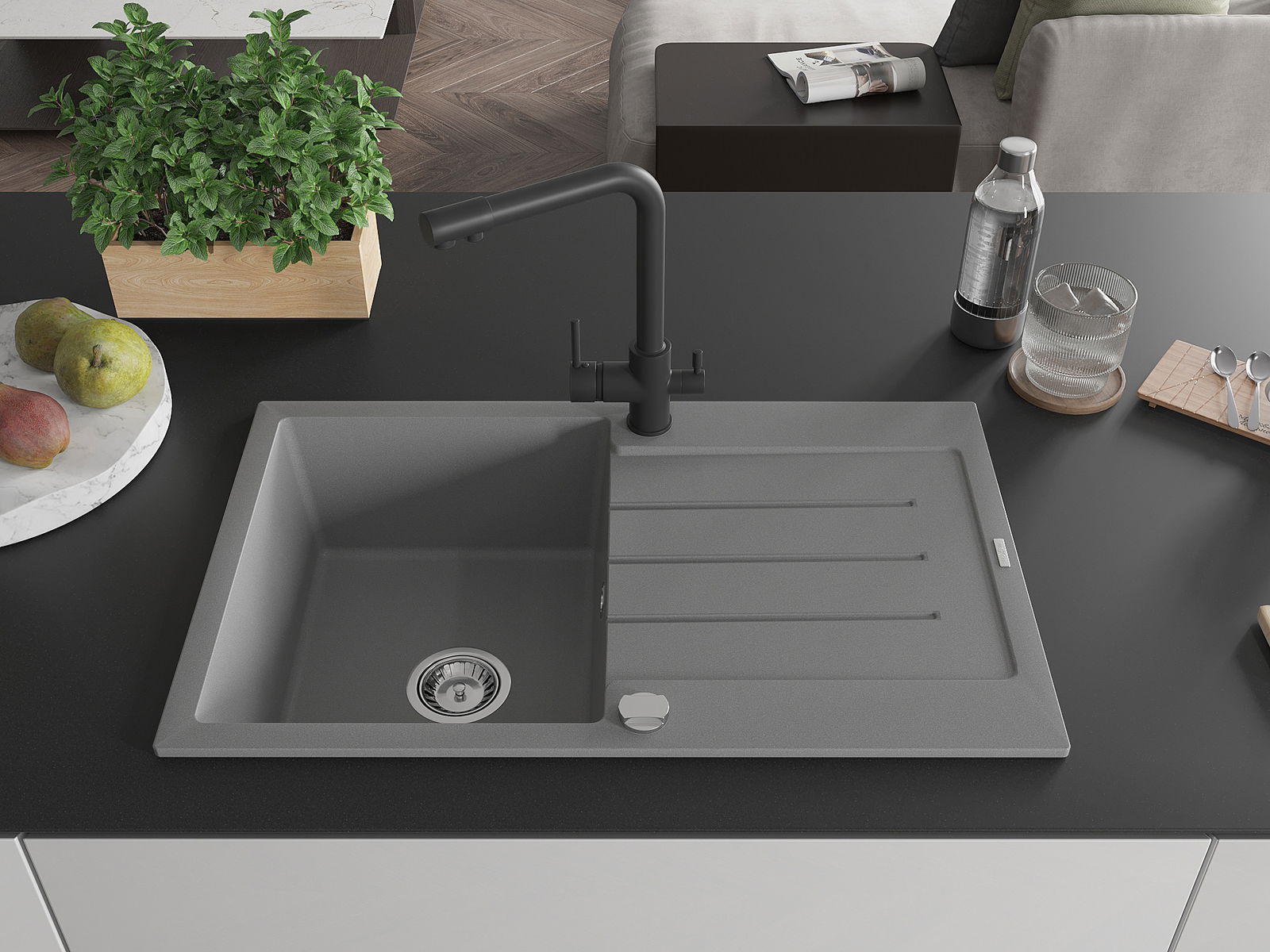Dřez byl vyroben z vysoce kvalitního granitu. Představuje elegantní a především praktický doplněk každé kuchyně, bez ohledu na její styl. Vysoká kvalita a trvanlivost granitu zajišťují dlouholeté používání.