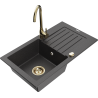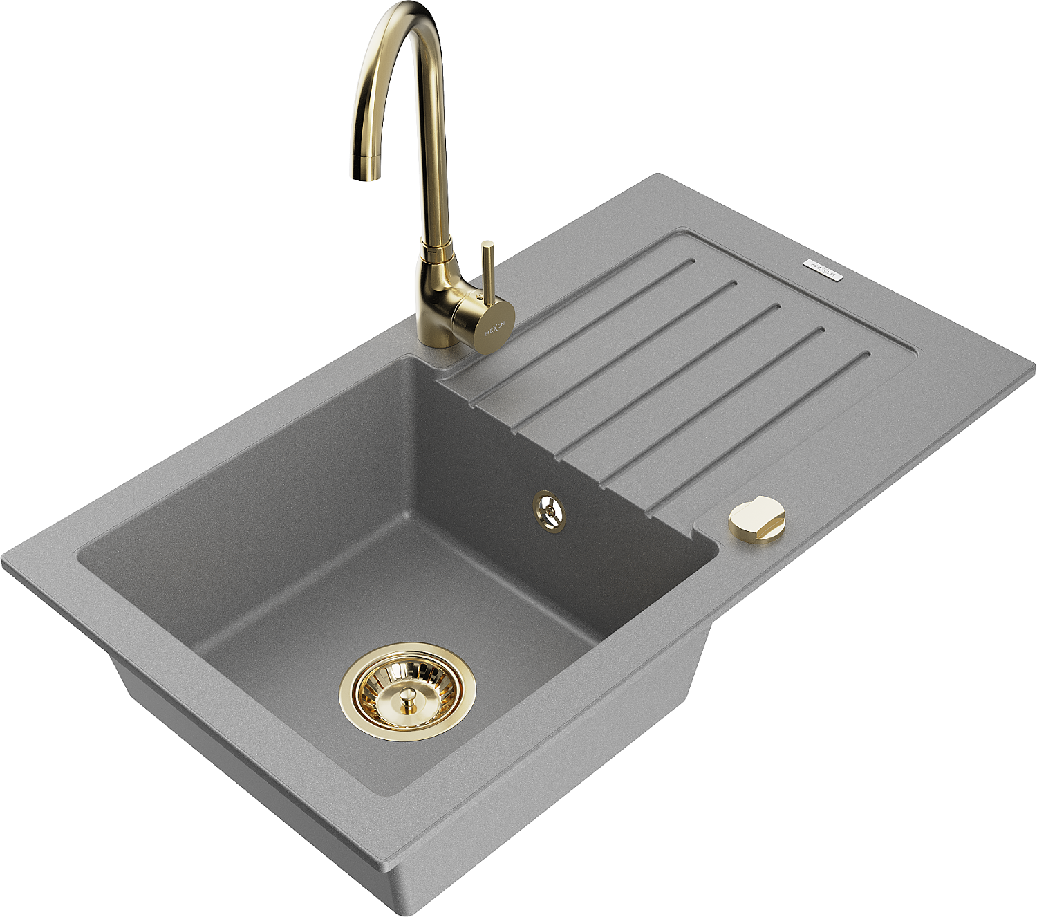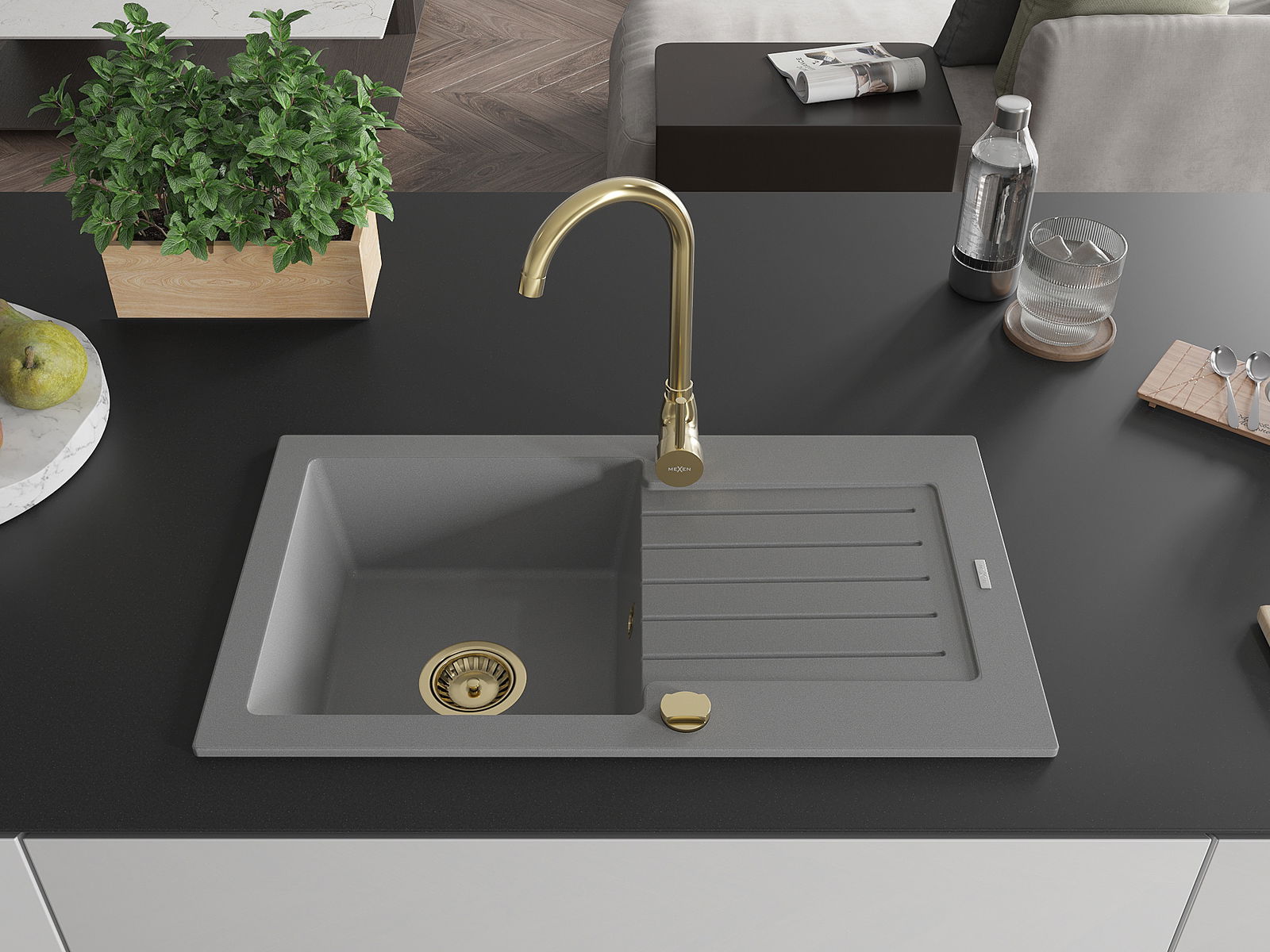 Mexen Pablo granitový dřez 1-komorový s odkapávačem a kuchyňskou baterií Telma, šedý - 6510-71-670200-50