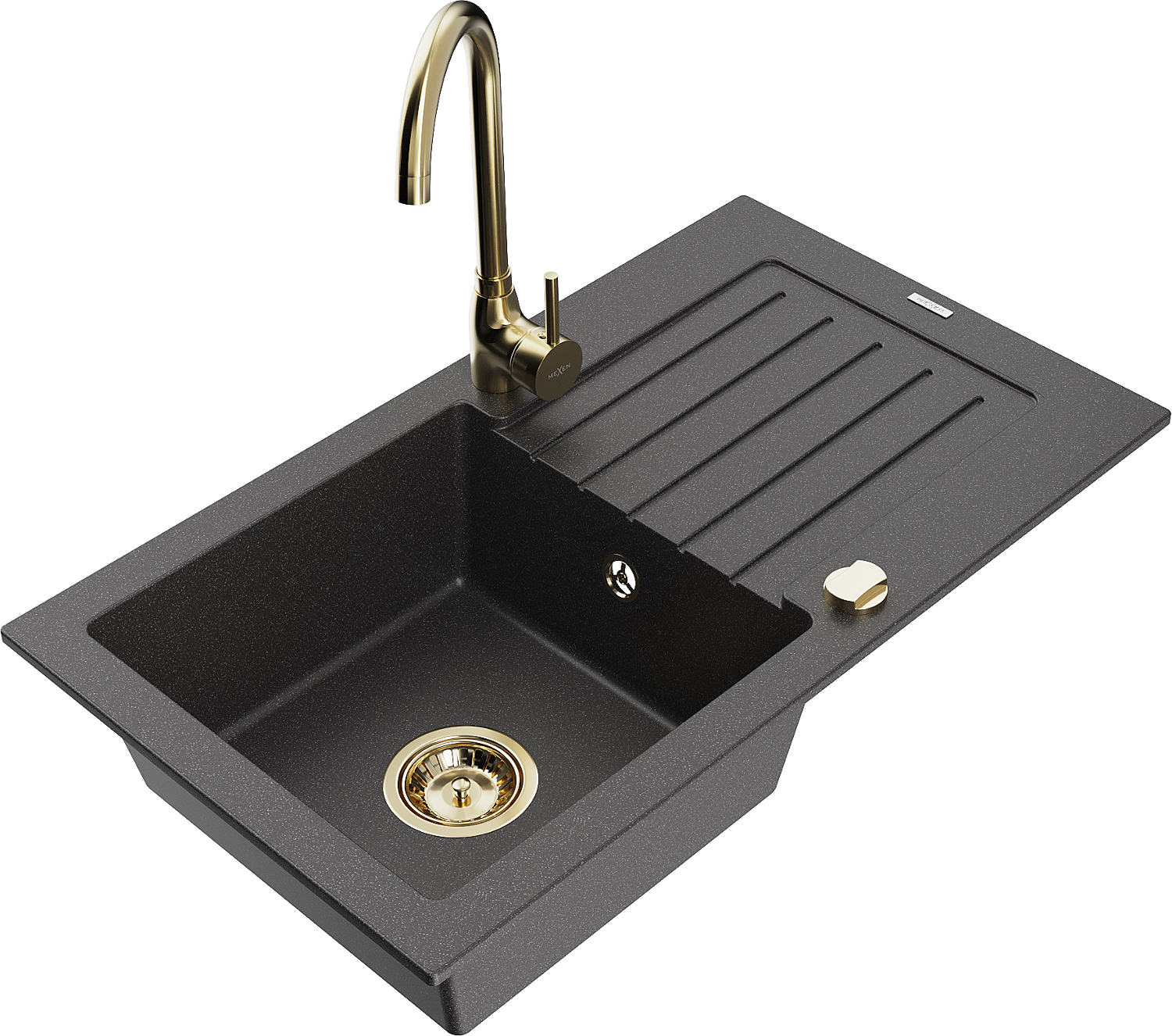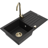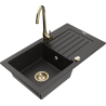 Mexen Pablo granitový dřez 1-komorový s odkapávačem a kuchyňskou baterií Telma, černý skvrnitý - 6510-76-670200-50