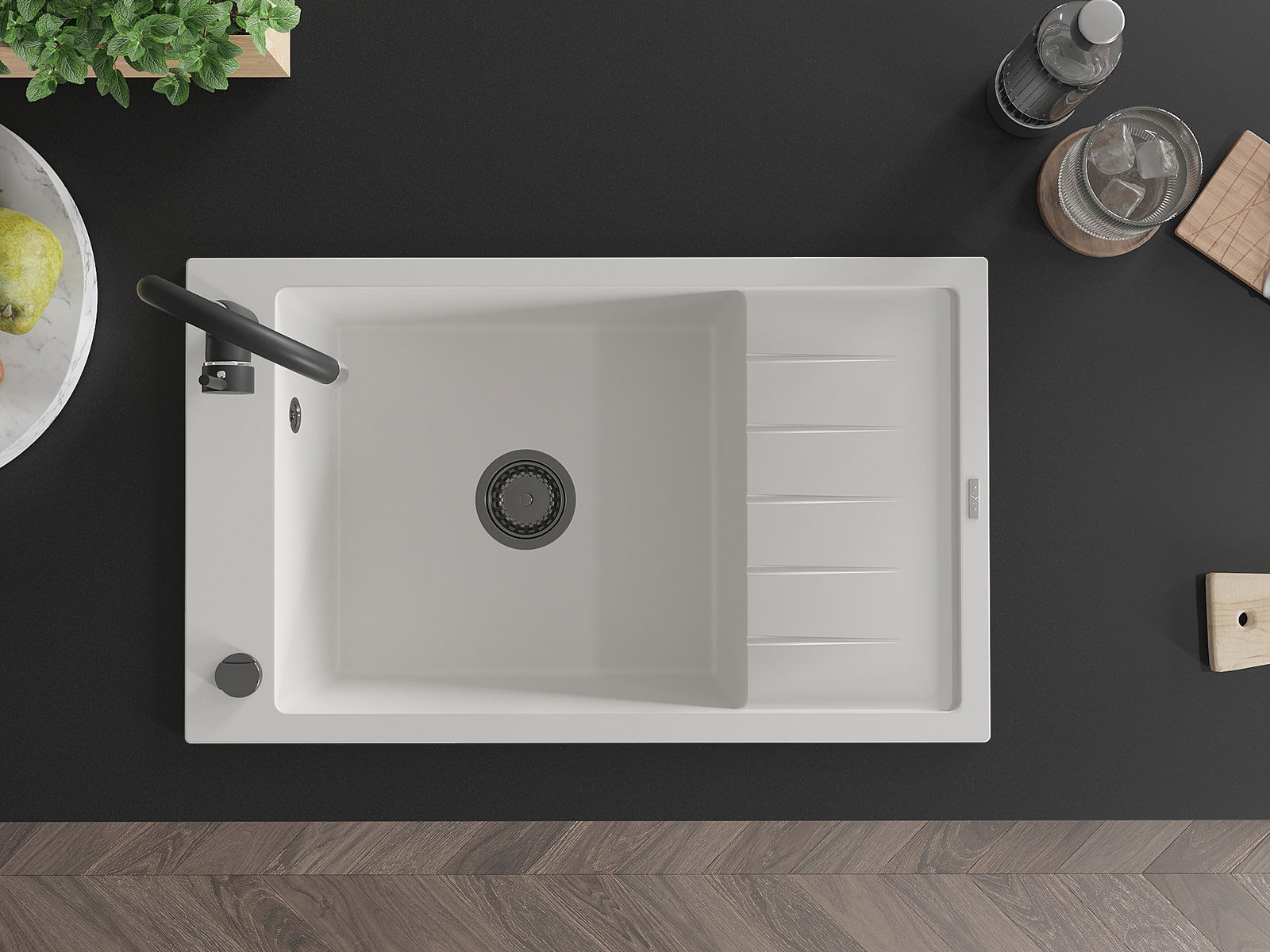 Povrch dřezu je velmi dobře vytvrzený, vyznačuje se výjimečnou odolností proti mechanickému poškození a poškrábání. Trvanlivý materiál umožňuje užívat si dobrý vzhled dřezu po mnoho let používání.