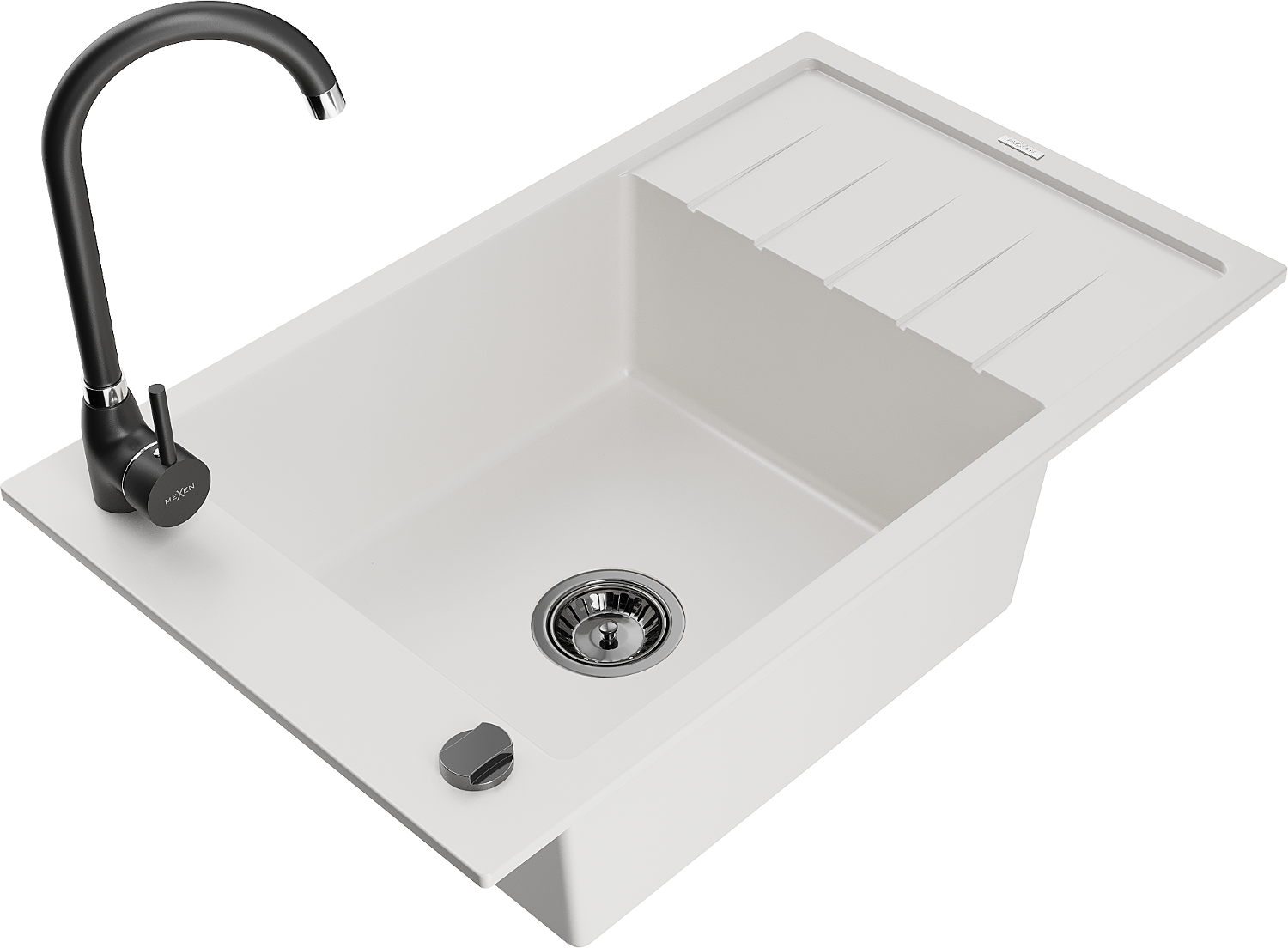 Mexen Elias granitový dřez jednokomorový s odkapávačem a kuchyňskou baterií Telma, bílý - 6511-20-670200-70