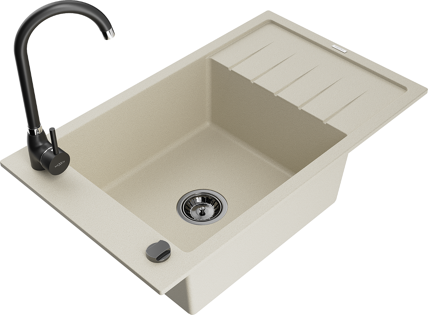 Mexen Elias granitový dřez 1-komorový s odkapávačem a kuchyňskou baterií Telma, béžový - 6511-69-670200-70