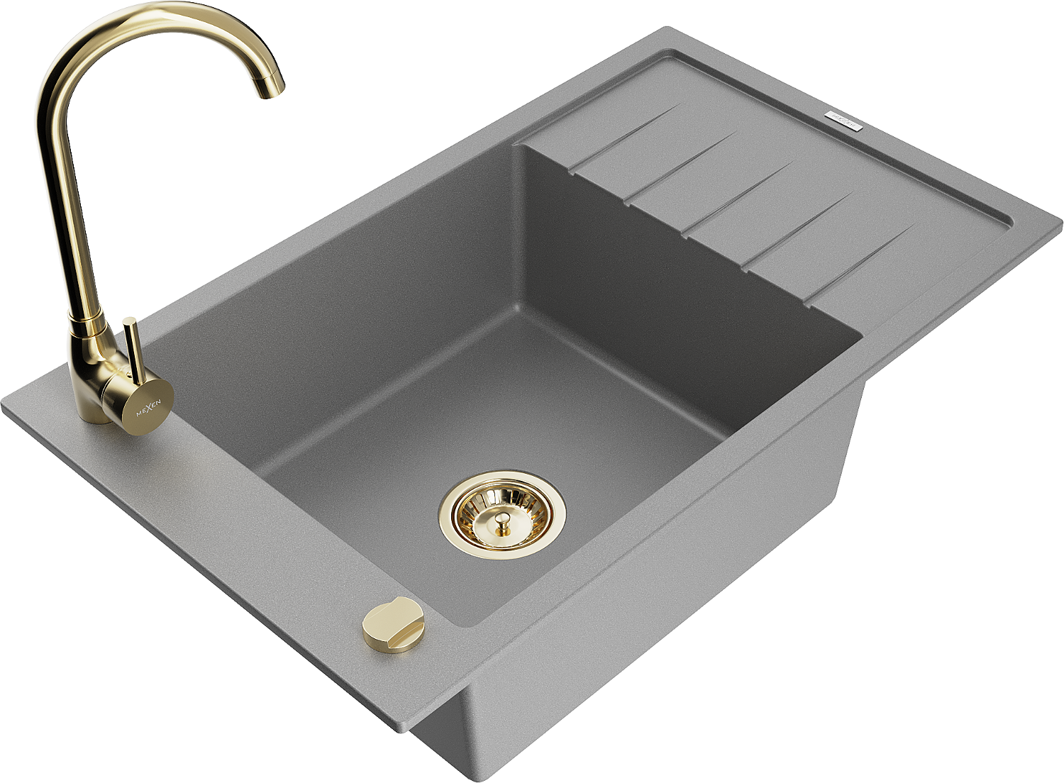 Mexen Elias granitový dřez 1-komorový s odkapávačem a kuchyňskou baterií Telma, šedý - 6511-71-670200-50