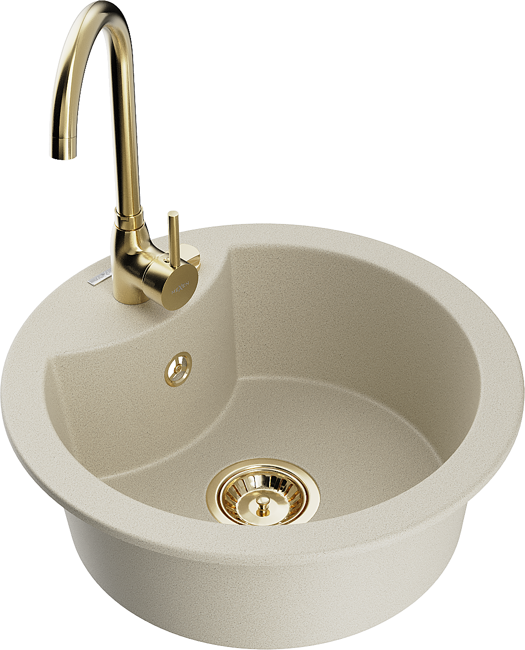 Mexen Diego granitový dřez 1-komorový s kuchyňskou baterií Telma, béžový - 6512-69-670200-50