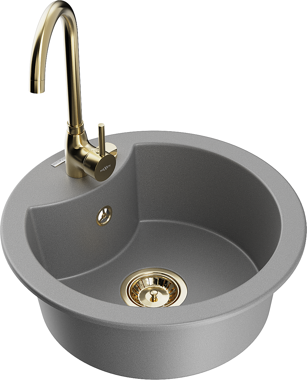 Mexen Diego granitový dřez 1-komorový s kuchyňskou baterií Telma, šedý - 6512-71-670200-50