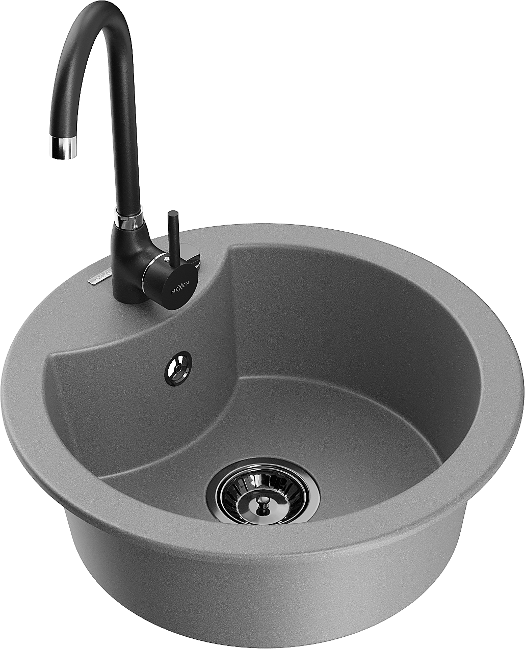 Mexen Diego granitový dřez jednokomorový s kuchyňskou baterií Telma, šedý - 6512-71-670200-70-B