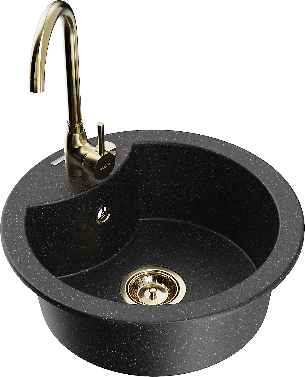 Mexen Diego granitový dřez 1-komorový s kuchyňskou baterií Telma, černý/stříbrný - 6512-73-670200-50