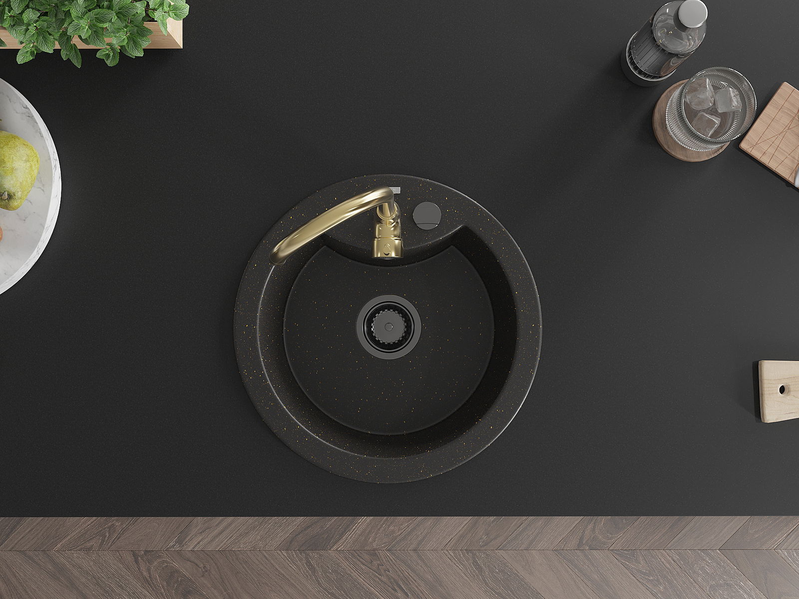 Dřez má předfrézovaný otvor o průměru 35 mm k samostatnému proražení. Může být použit například k montáži dávkovače na tekutinu, který eliminuje přítomnost plastových lahví v kuchyni a dodá jí elegantní finiš.