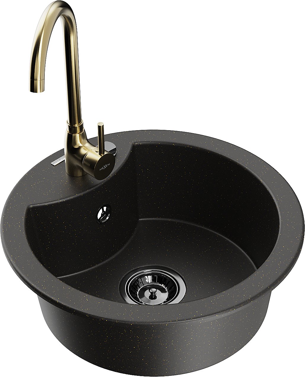 Mexen Diego granitový dřez 1-komorový s kuchyňskou baterií Telma, černý/zlatý - 6512-75-670200-50-B