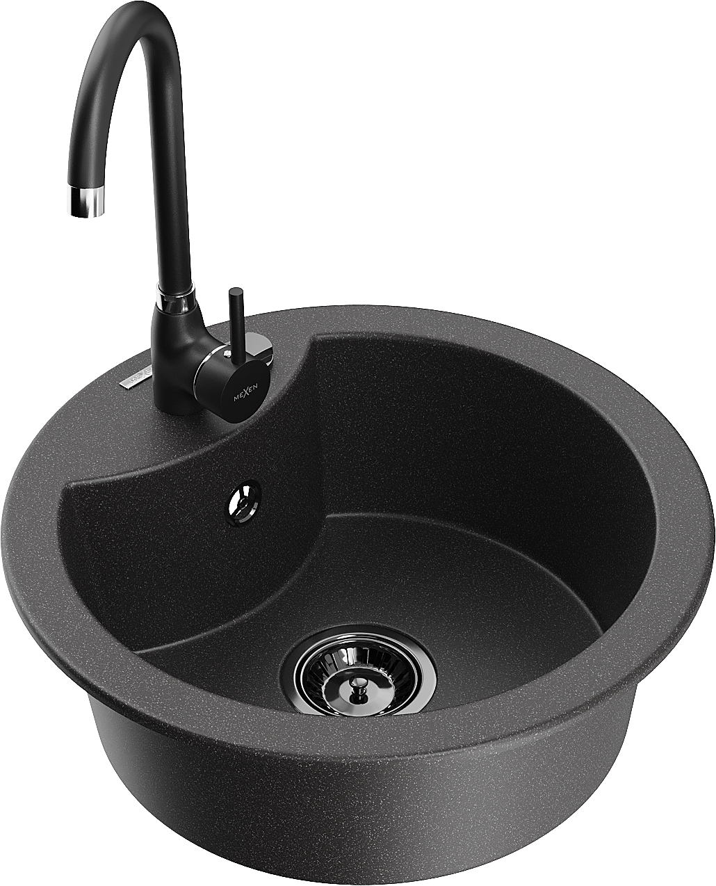 Mexen Diego granitový dřez 1-komorový s kuchyňskou baterií Telma, černý s kropením - 6512-76-670200-70-B