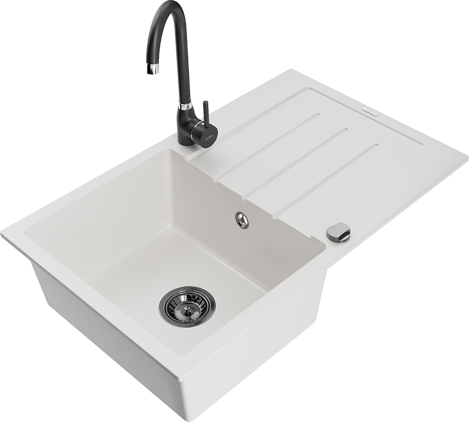 Mexen Bruno granitový dřez s 1 komorou a odkapávačem a kuchyňskou baterií Telma, bílá - 6513-20-670200-70