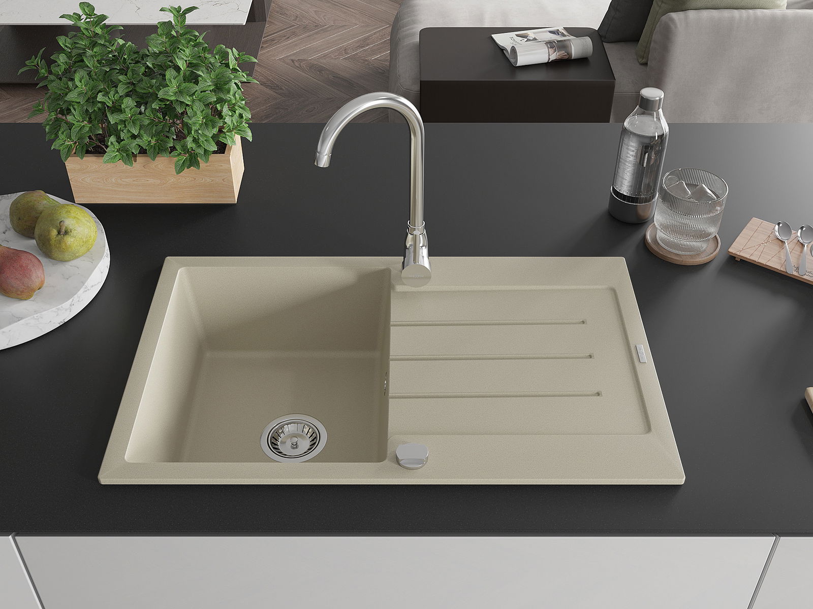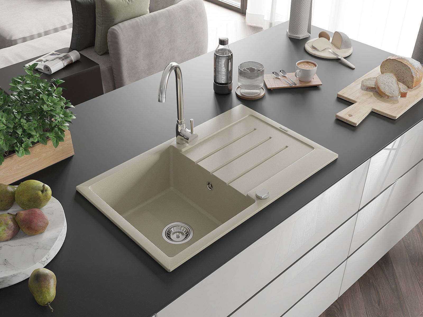 Dřez byl vyroben z vysoce kvalitního granitu. Představuje elegantní a především praktický doplněk každé kuchyně, bez ohledu na její styl. Vysoká kvalita a trvanlivost granitu zajišťují dlouholeté používání.