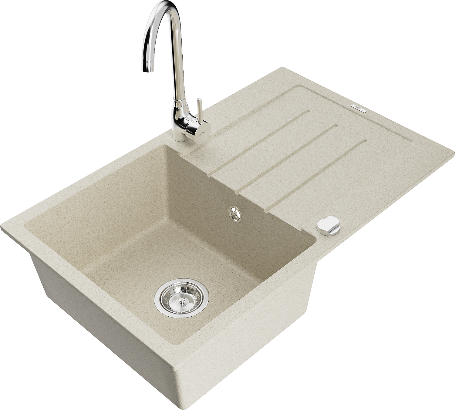 Mexen Bruno granitový dřez s 1 komorou a odkapávačem a kuchyňská baterie Telma, béžový - 6513-69-670200-00