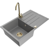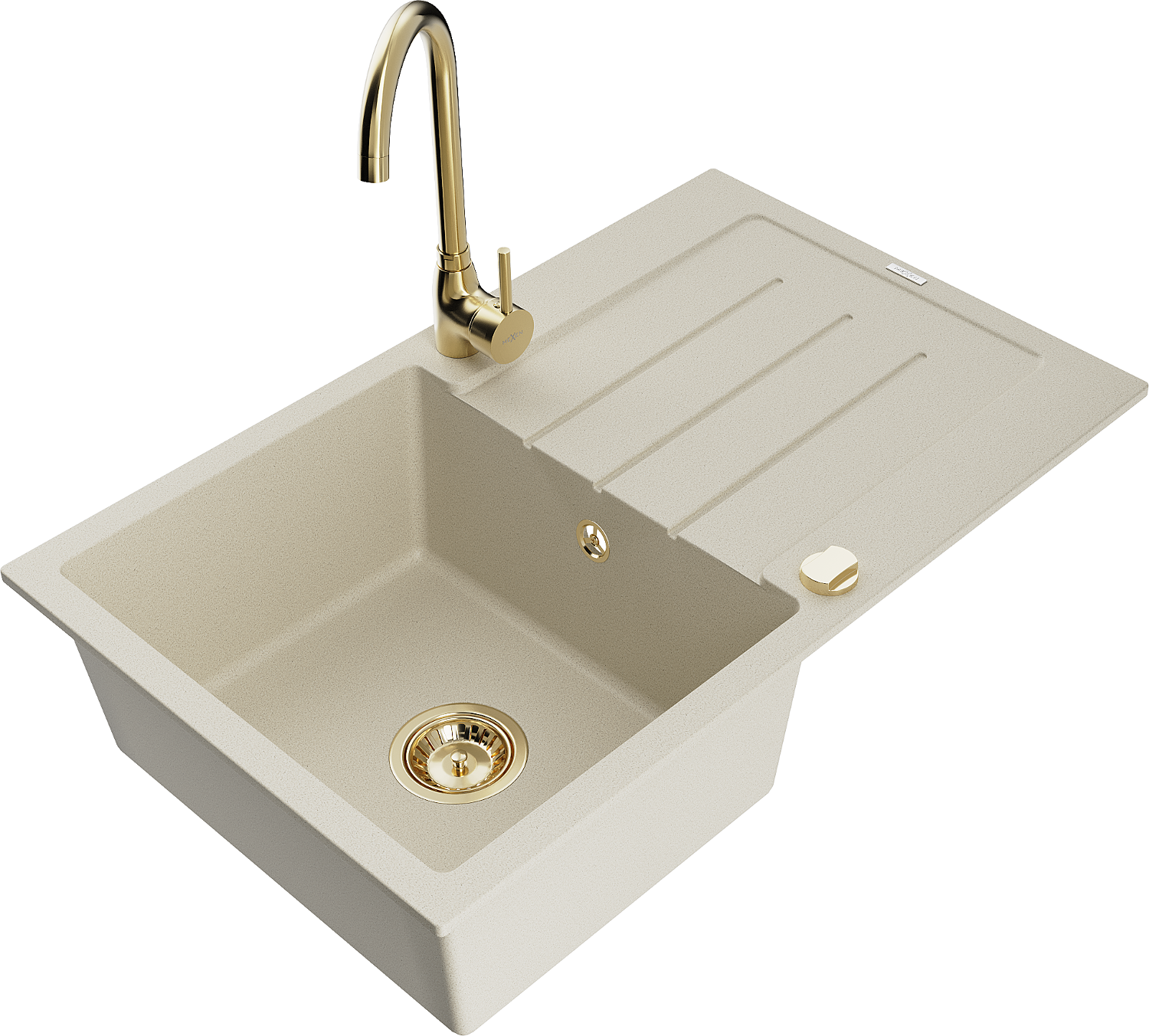 Mexen Bruno granitový dřez 1-komorový s odkapávačem a kuchyňskou baterií Telma, béžový - 6513-69-670200-50