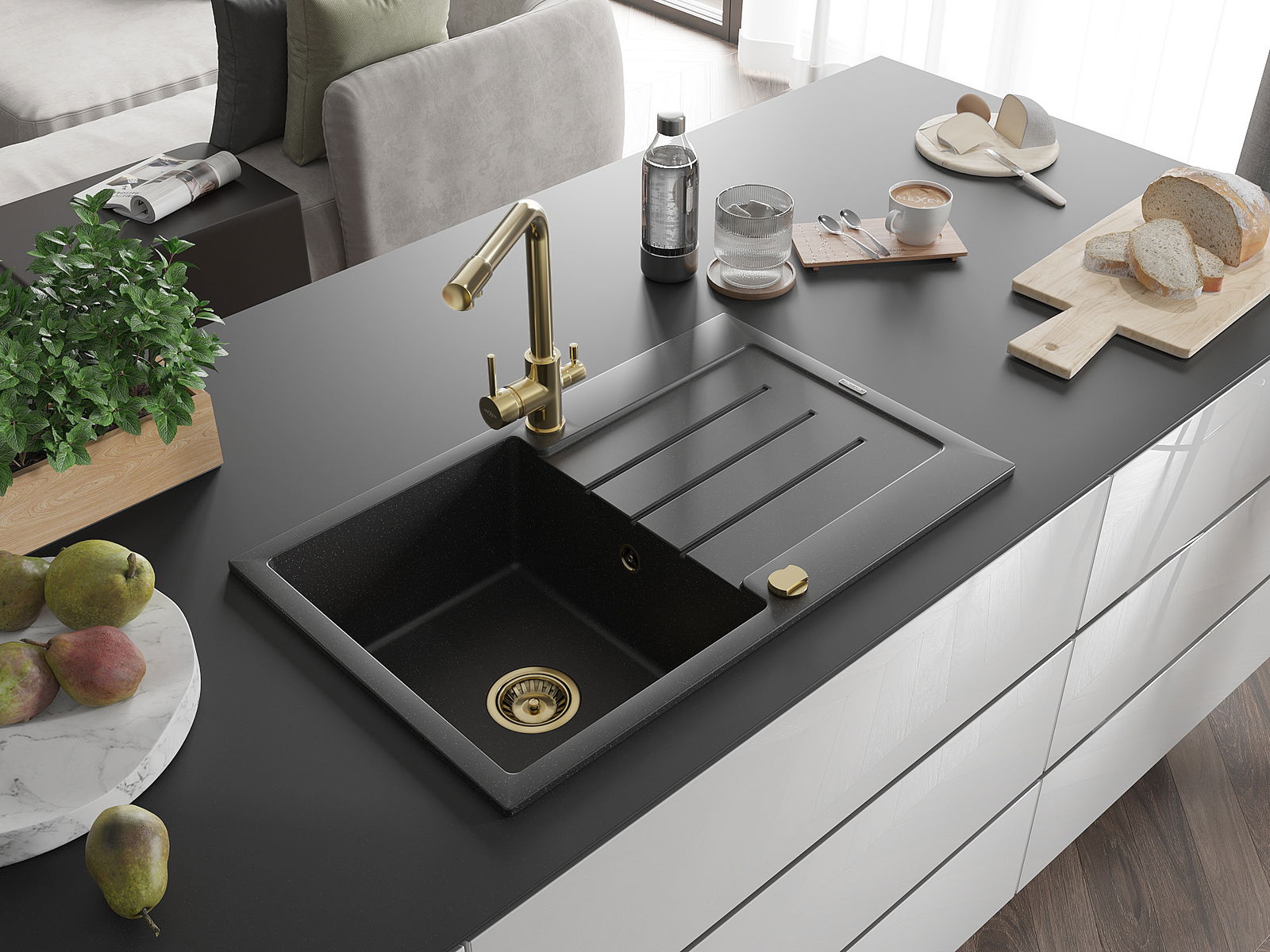 Dřez byl vyroben z vysoce kvalitního granitu. Představuje elegantní a především praktický doplněk každé kuchyně, bez ohledu na její styl. Vysoká kvalita a trvanlivost granitu zajišťují dlouholeté používání.