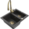 Mexen Carlos granitový dřez 1,5-komorový s kuchyňskou baterií Savita, černý - 6518-77-672601-50