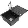 Mexen Bruno granitový dřez 1-komorový s odkapávačem a kuchyňskou baterií Duero, černý skvrnitý - 6513-76-671600-00