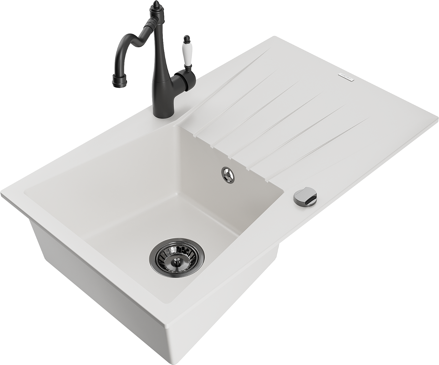 Povrch dřezu je odolný proti skvrnám a zabarvení, což usnadňuje jeho čištění a zachovává jeho barvu po dlouhou dobu používání. Estetický a praktický doplněk každé kuchyně.