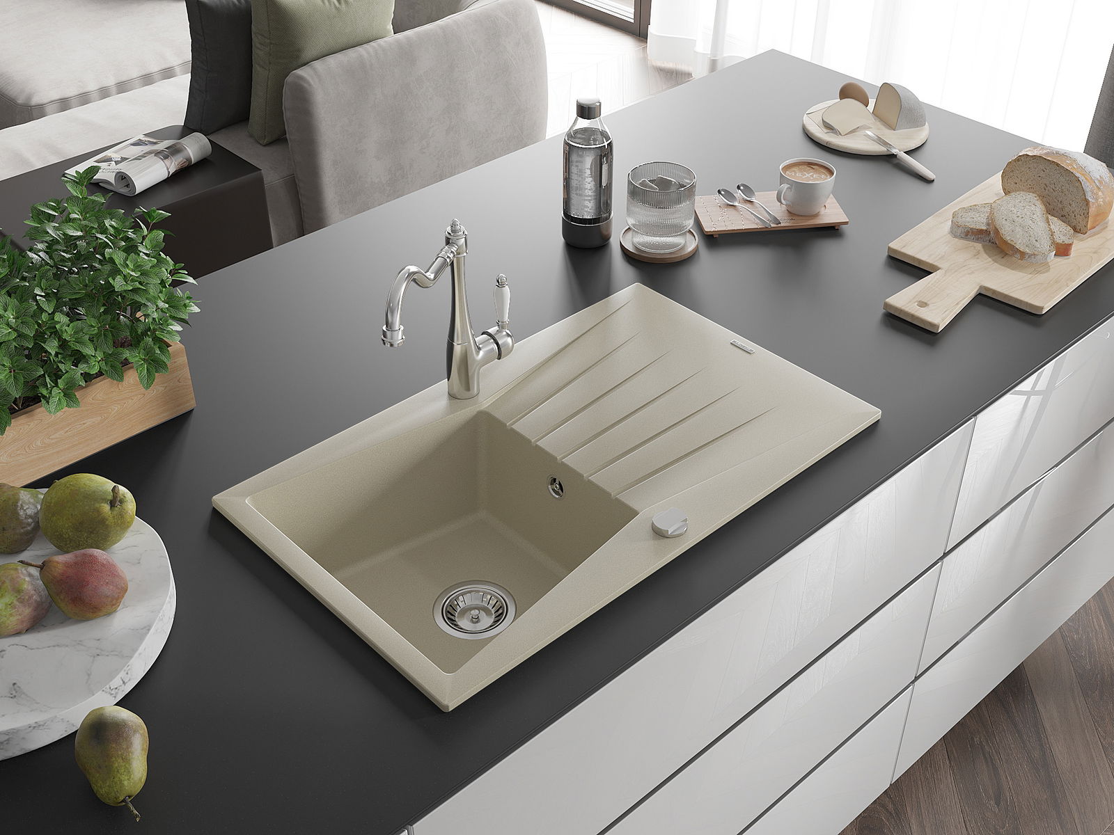 Dřez byl vyroben z vysoce kvalitního granitu. Představuje elegantní a především praktický doplněk každé kuchyně, bez ohledu na její styl. Vysoká kvalita a trvanlivost granitu zajišťují dlouholeté používání.