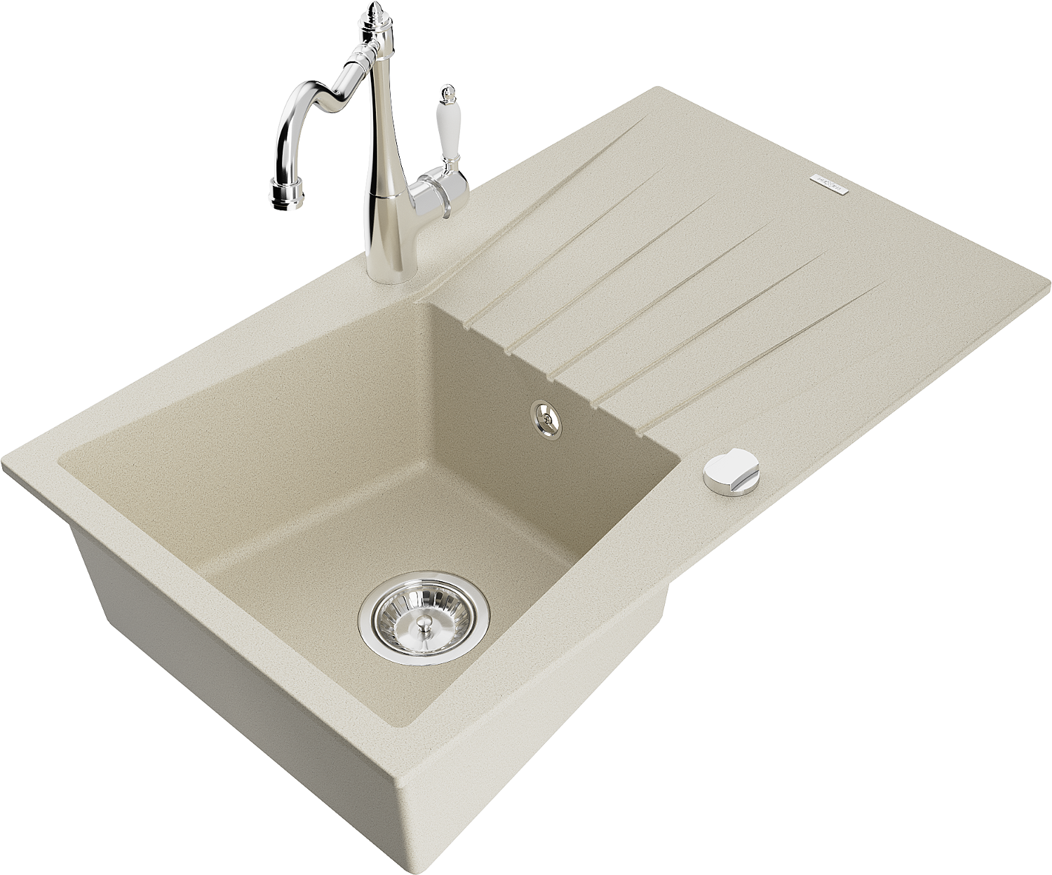 Povrch dřezu je odolný proti skvrnám a zabarvení, což usnadňuje jeho čištění a zachovává jeho barvu po dlouhou dobu používání. Estetický a praktický doplněk každé kuchyně.