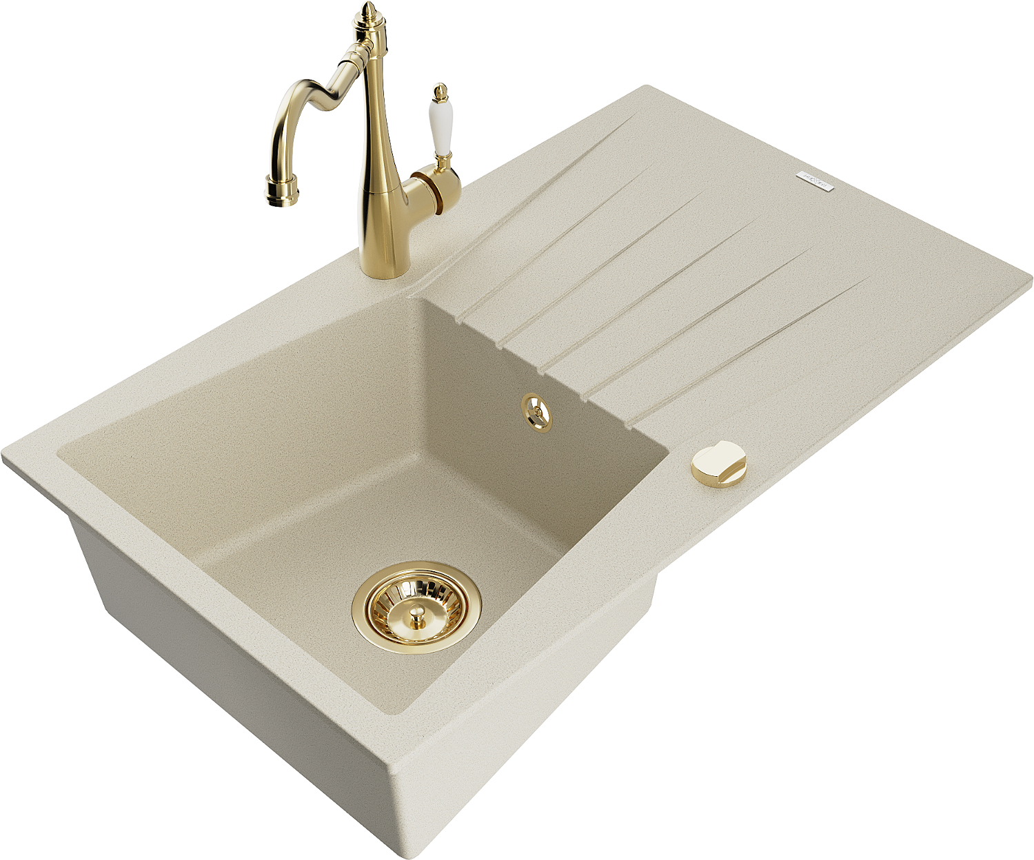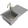 Mexen Cesar granitový dřez s 1 komorou, odkapávačem a kuchyňskou baterií Carla, béžový - 6514-69-670700-50